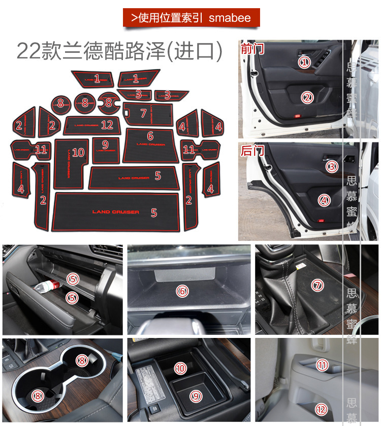 Full Set Anti-Slip Car Gate Slot Mats Cup Holder Armrest Box Decoration Storage for 2022 Toyota Land Cruiser LC300