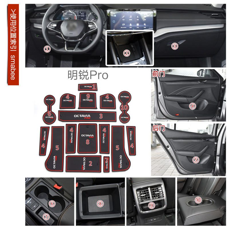 - Direct Fitment: A perfect replacement for your car interior. Compatible with Skoda Octavia Pro. Each pad is custom fit for specific slots as shown in the image.