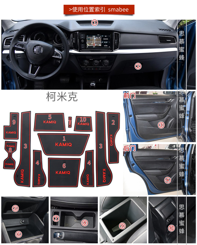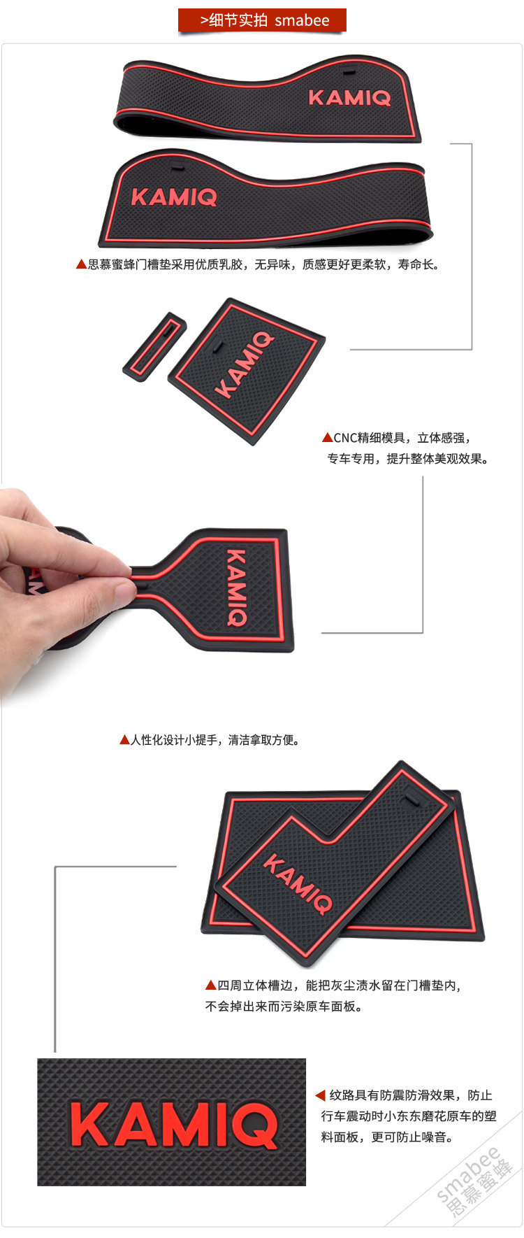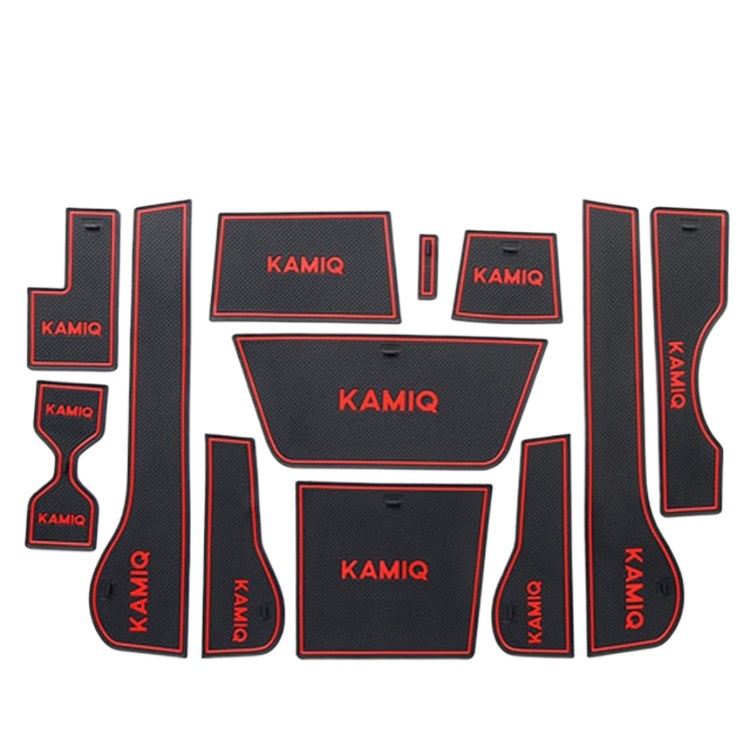 Full Set Anti-Slip Car Gate Slot Mats Interior Trim Armrest Storage Box Pad Water Cup Non-Slip Mat for Skoda Kamiq