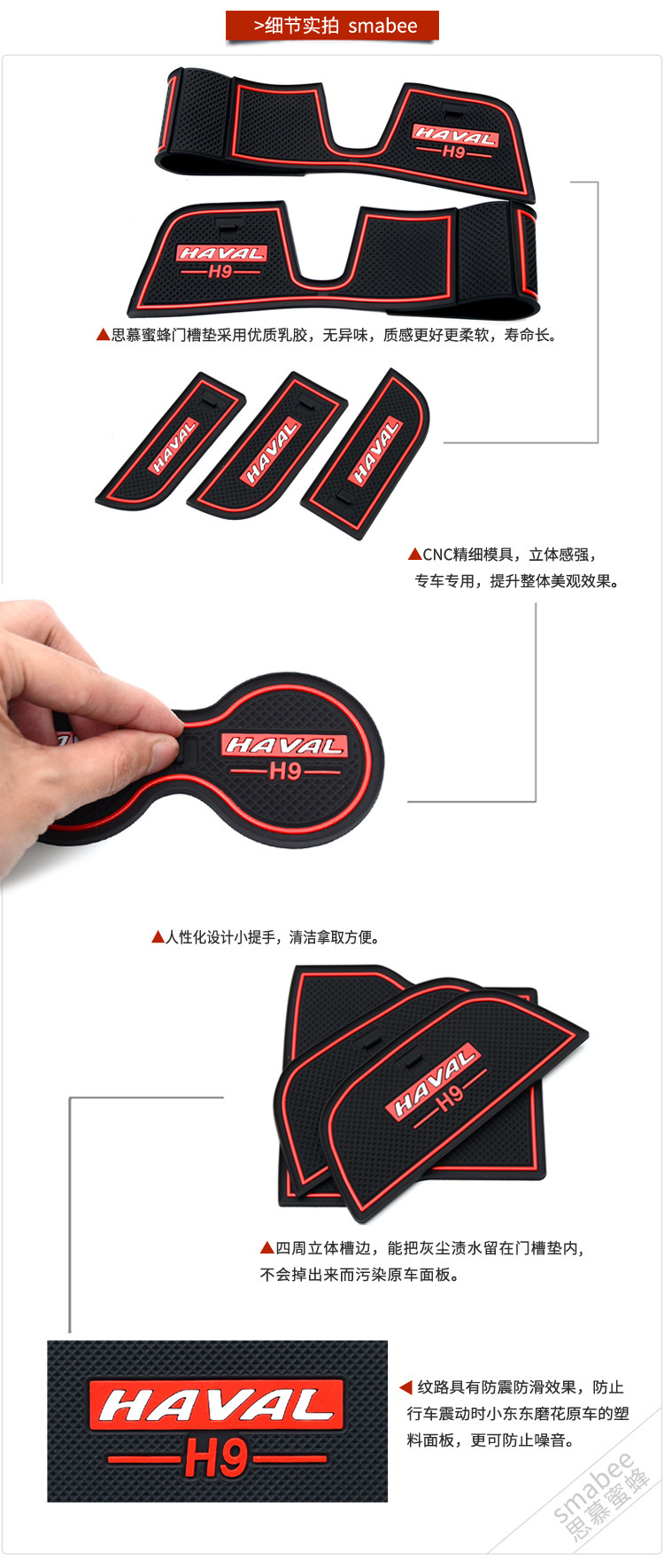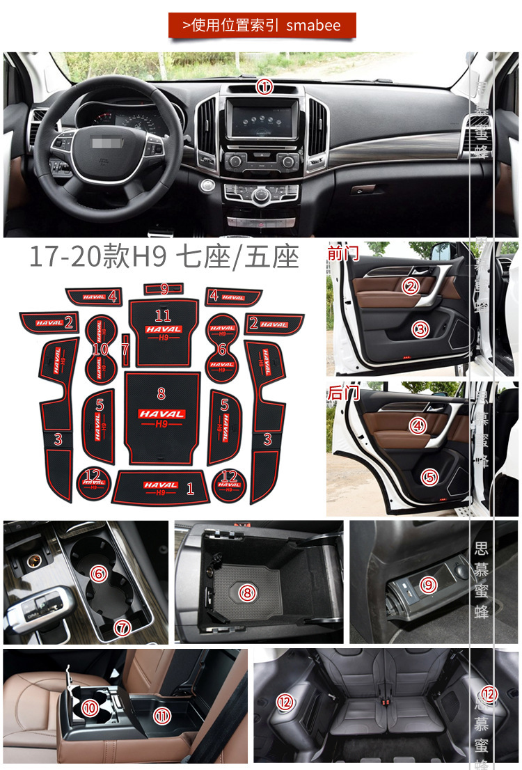 Full Set Anti-Slip Car Gate Slot Mats Cup Storage Pad Interior Accessories for Haval H9 2017-2019