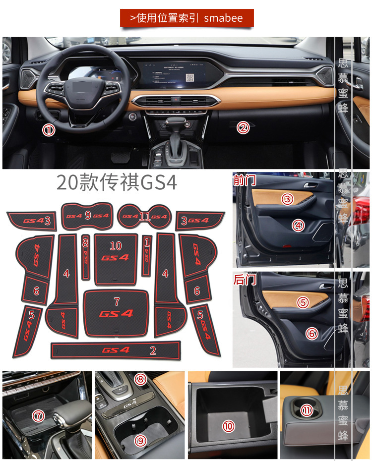 Full Set Anti-Slip Car Gate Slot Mats Interior Trim for GAC Trumpchi GS4 2020 Models