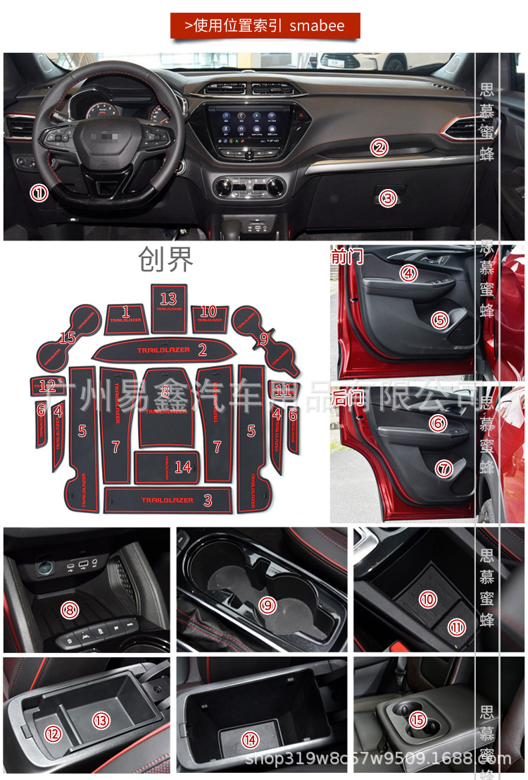 Full Set Anti-Slip Car Gate Slot Mats Cup Holder Armrest Box Storage Pads for Chevrolet Trailblazer