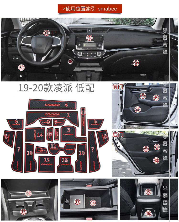 Full Set Anti-Slip Car Gate Slot Mats Cup Holder Rubber Pads for Honda Crider 2019