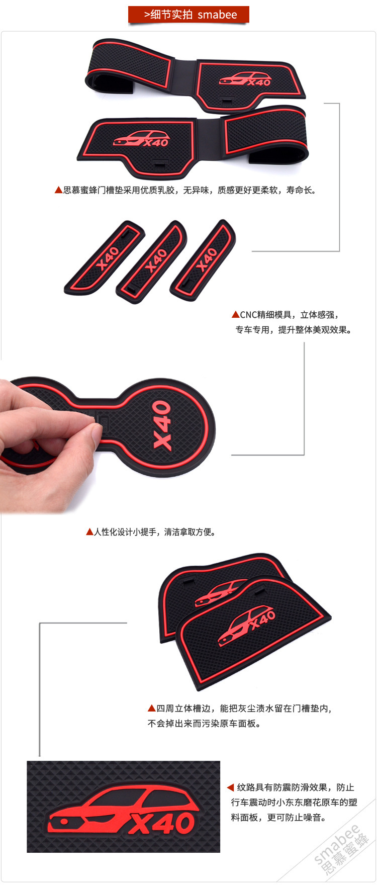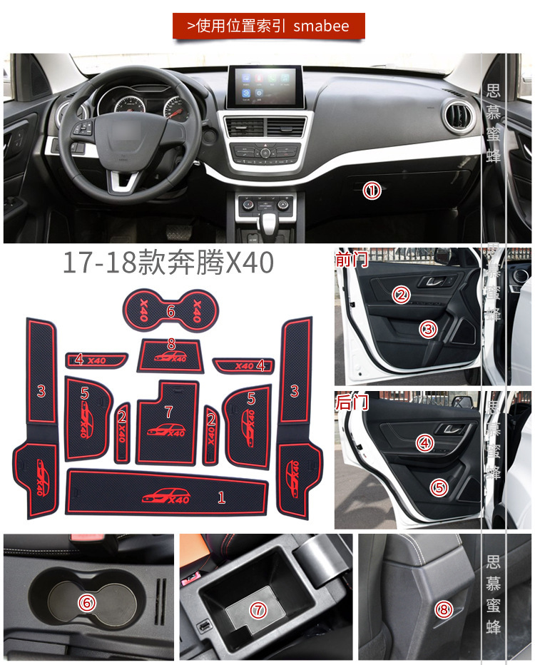 Full Set Anti-Slip Car Interior Door Slot Mat Cup Holder Pad Storage Liner for FAW Besturn X40 2017-2018