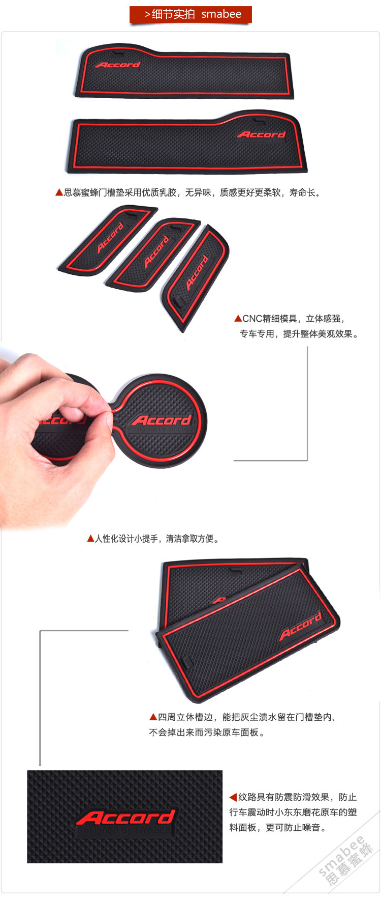 Full Set Anti-Slip Door Slot Gate Slot Cup Holder Mats for Honda 10th Accord 2018-2022