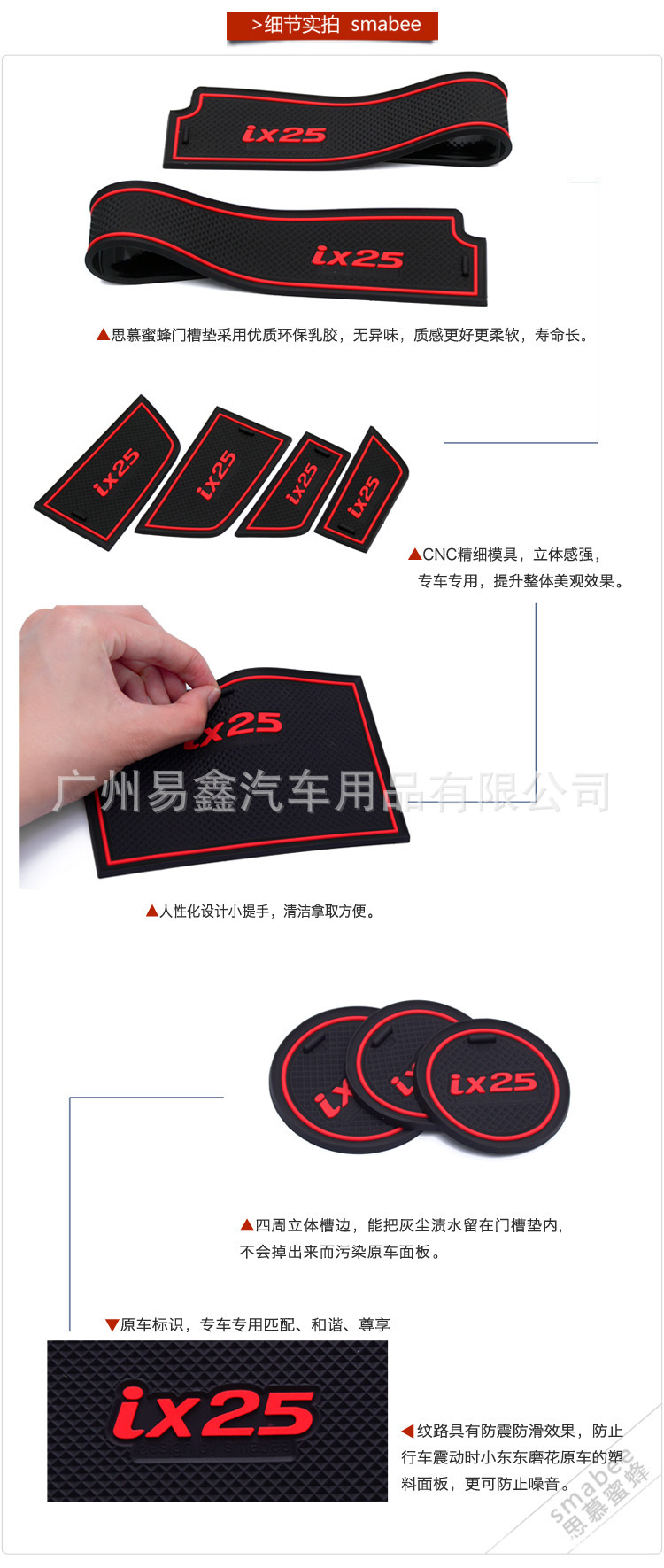 Full Set Anti-Slip Door Slot Mat Interior Cup Holder Storage Pad for Hyundai IX25