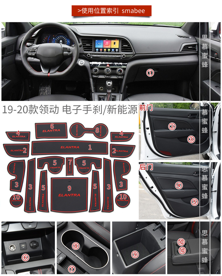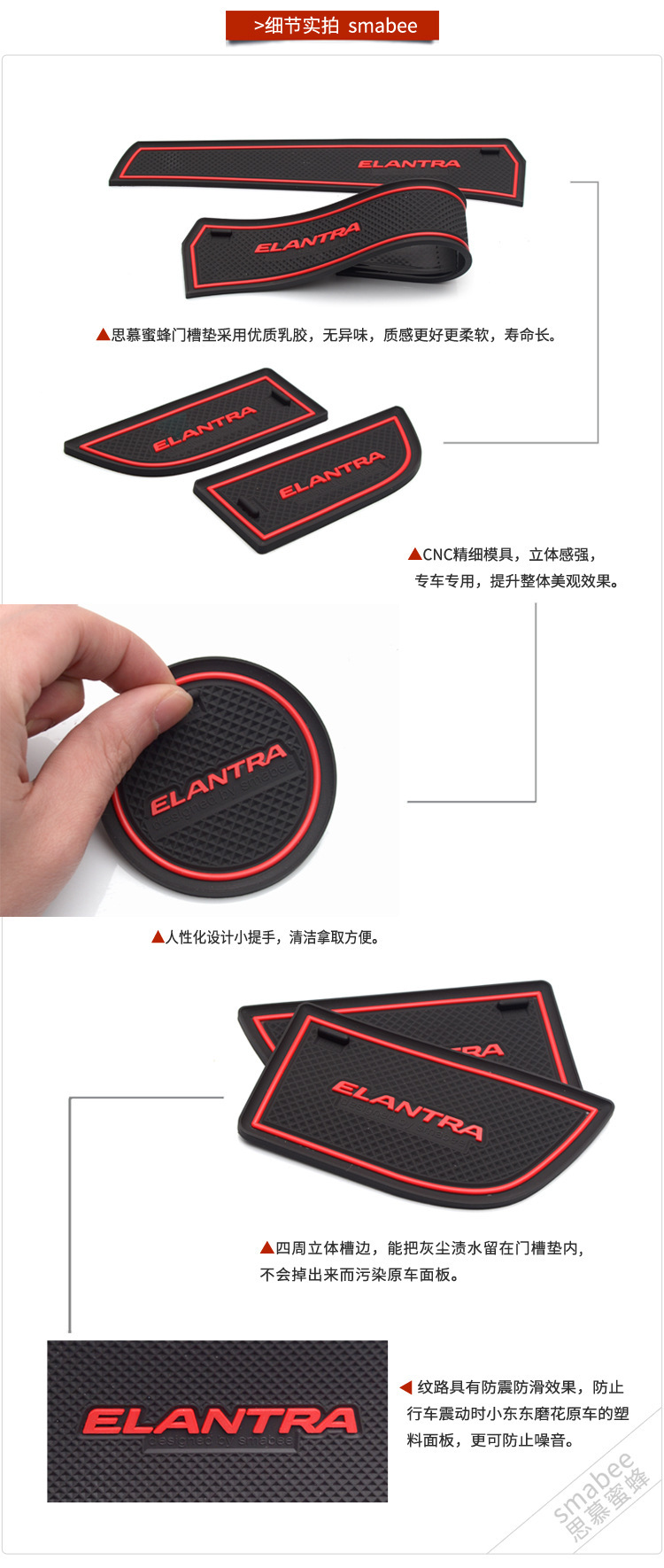 Full Set Anti-Slip Door Slot Mats and Cup Holder Liners for Hyundai Elantra 2019-2022
