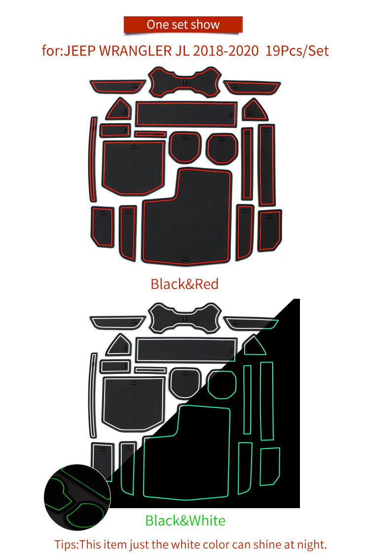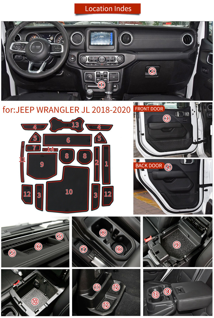 Full Set Anti-Slip Door Slot Mats Cup Holder Liners for Jeep Wrangler JL 2018-2023
