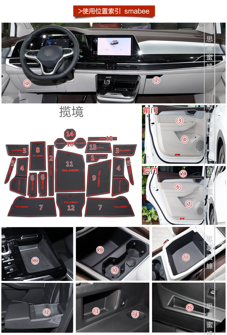 Full Set Anti-Slip Door Slot Mats Center Console Armrest Storage Cup Holder Pads for Volkswagen Talagon