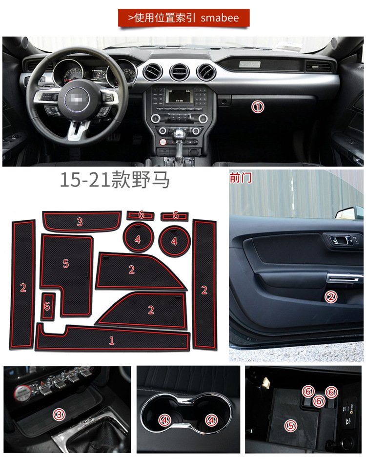 Full Set Anti-Slip Gate Slot Cup Holder Mats for Ford Mustang 2015-2020 Interior
