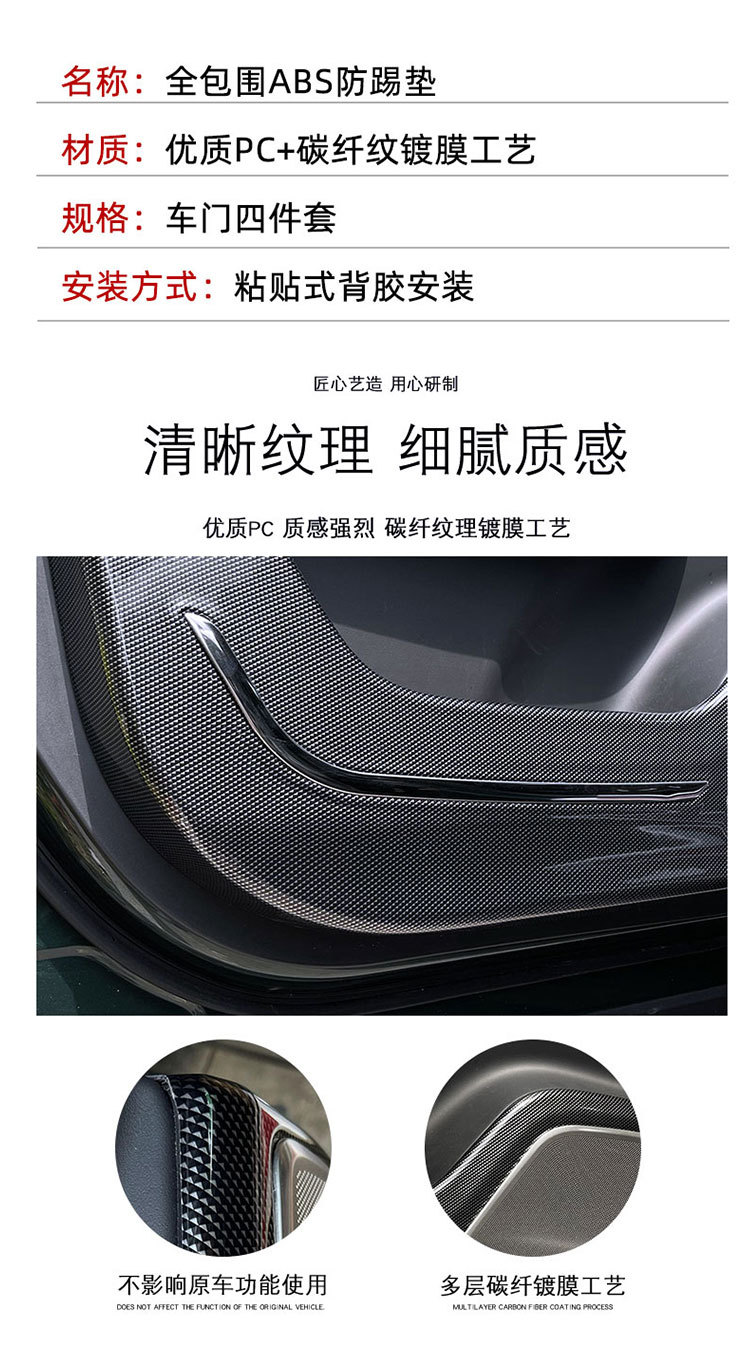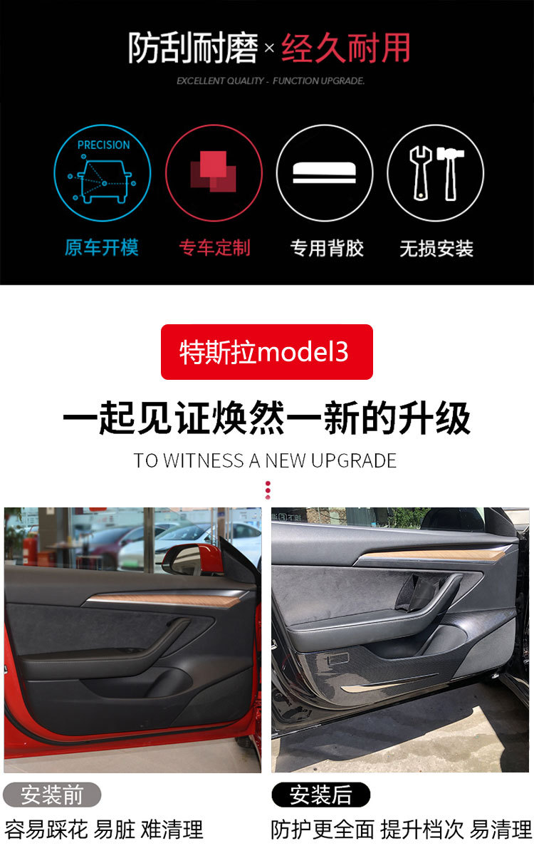 Full Surround ABS Carbon Fiber Anti-Kick Door Panel Cover for Tesla Model 3 Model Y
