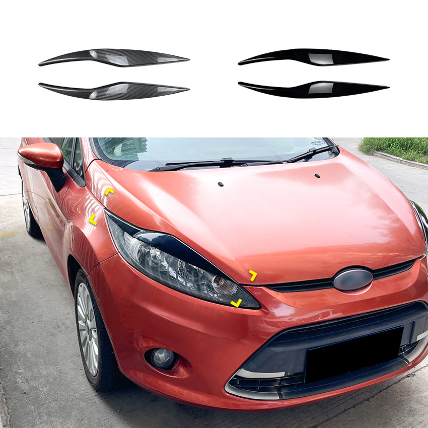 Gloss Black Front Headlight Eyebrow Eyelid Trim for Ford Fiesta MK6 (2008-2012)