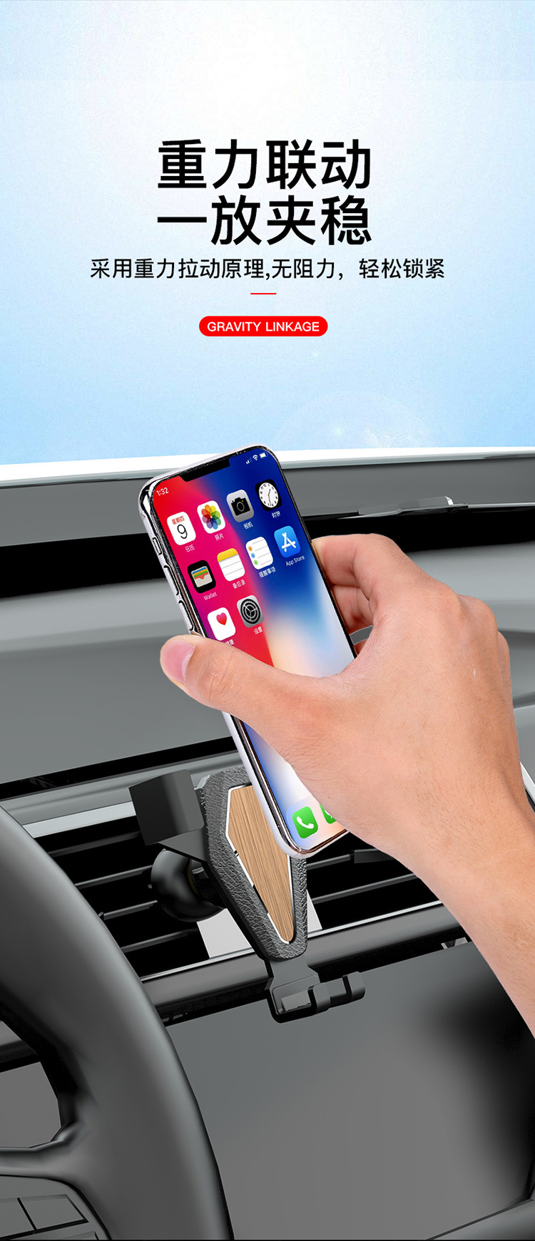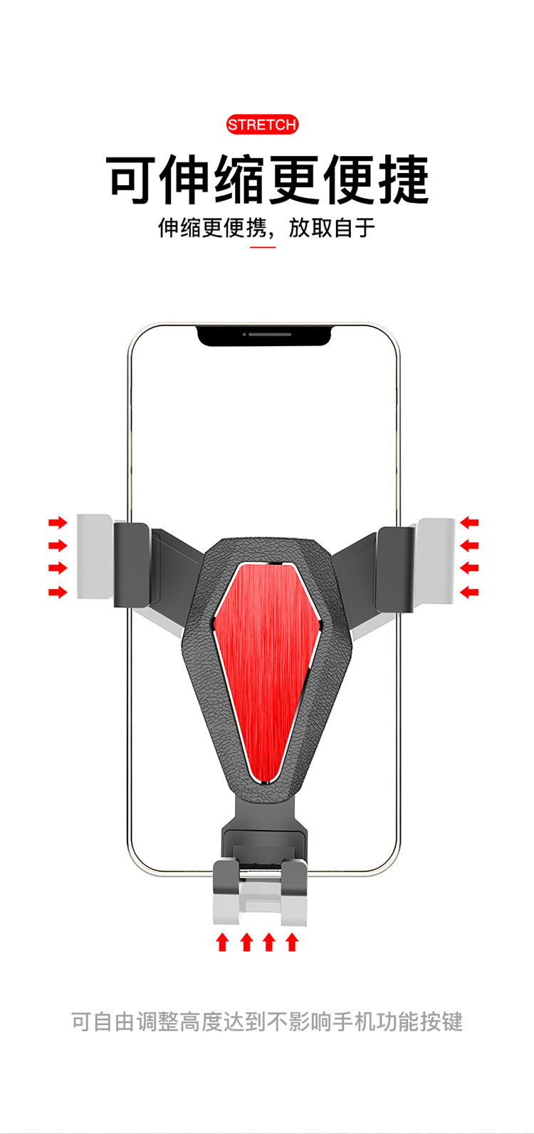- Effortless Gravity Operation: Featuring an innovative gravity linkage system with a secure buckle clip, this holder allows for one-hand operation. Simply insert your phone, and the arms automatically lock into place for easy and safe navigation.