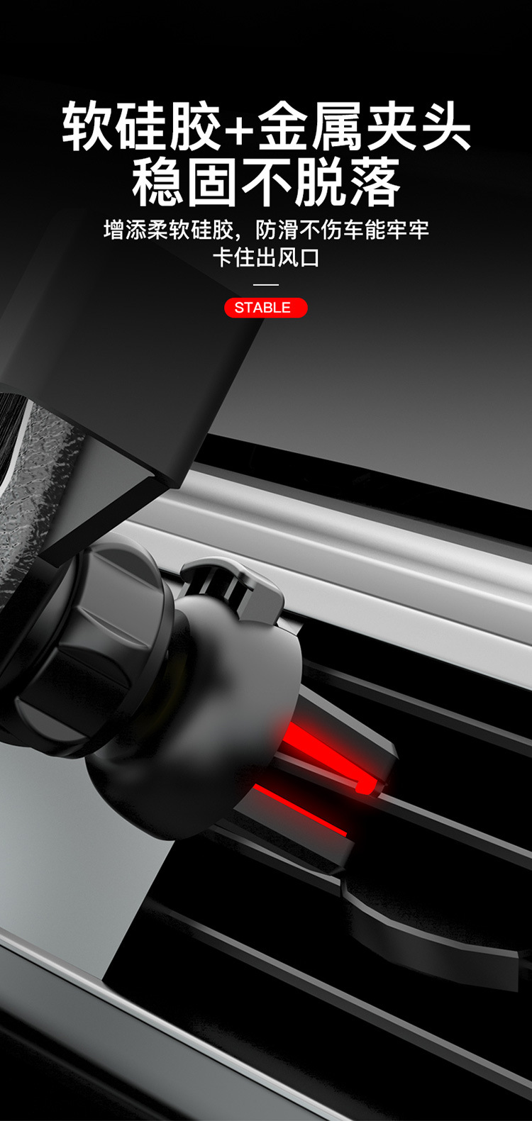 - Sleek & Modern Design: Available in stylish silver, gold, black, and red finishes, this air vent phone holder adds a touch of modern elegance to your car’s interior, blending seamlessly with any dashboard.