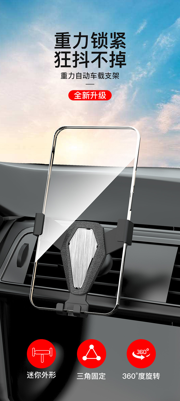 Gravity Type Car Phone Mount Dashboard Air Vent Navigation Holder for Universal Vehicle