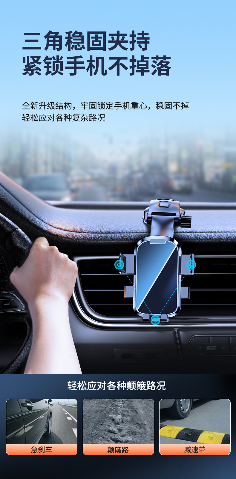 - Effortless Gravity Operation: Simply place your phone into the mount; the gravity linkage automatically locks it in place. Easy one-hand operation for quick insertion and removal, ensuring a safe driving experience.