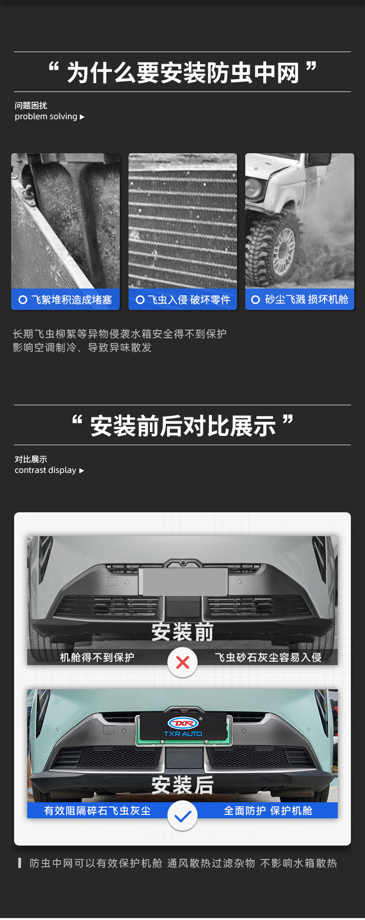 - Performance-Driven Design: Effectively prevents insects and small foreign objects from entering the engine bay, protecting the radiator and improving vehicle longevity.