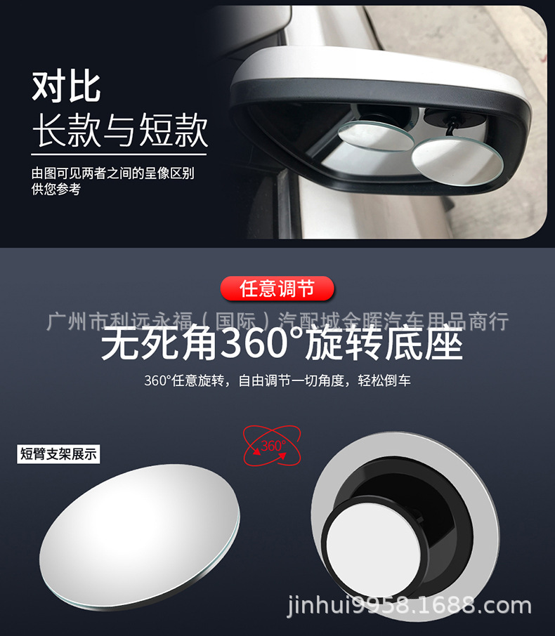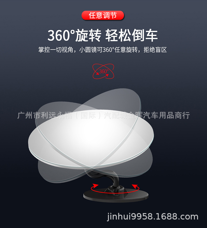 - Performance-Driven Design: Features a 360-degree adjustable base, allowing for personalized angle adjustments to eliminate blind spots effectively, as shown in the images.