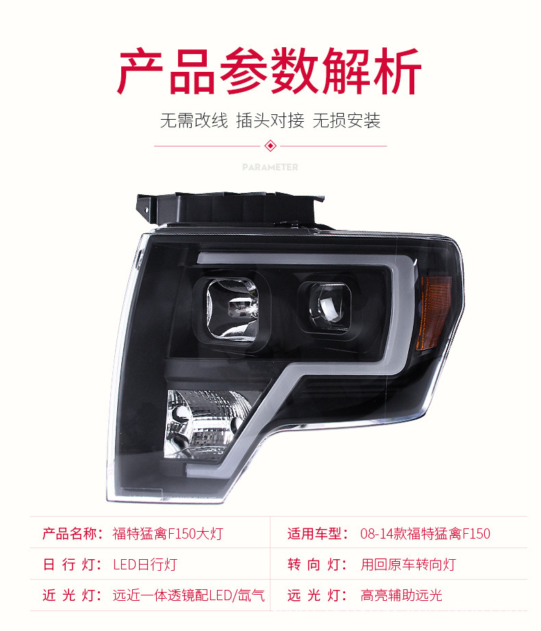 Headlight Assembly Bi-Xenon Projector LED DRL for Ford F-150 Raptor (2008-2014)