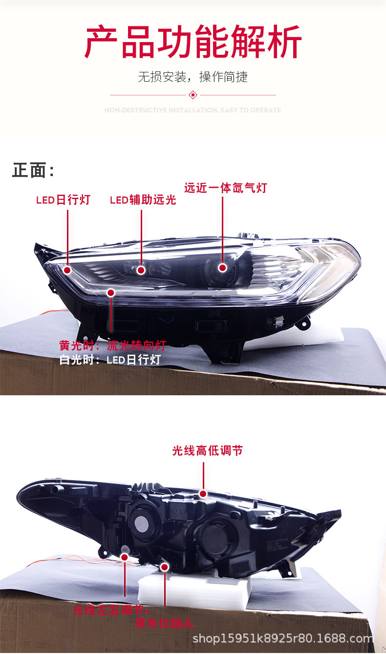 Headlight Assembly Bi-Xenon Projector LED Daytime Running Light Sequential Turn Signal for Ford Mondeo 2013