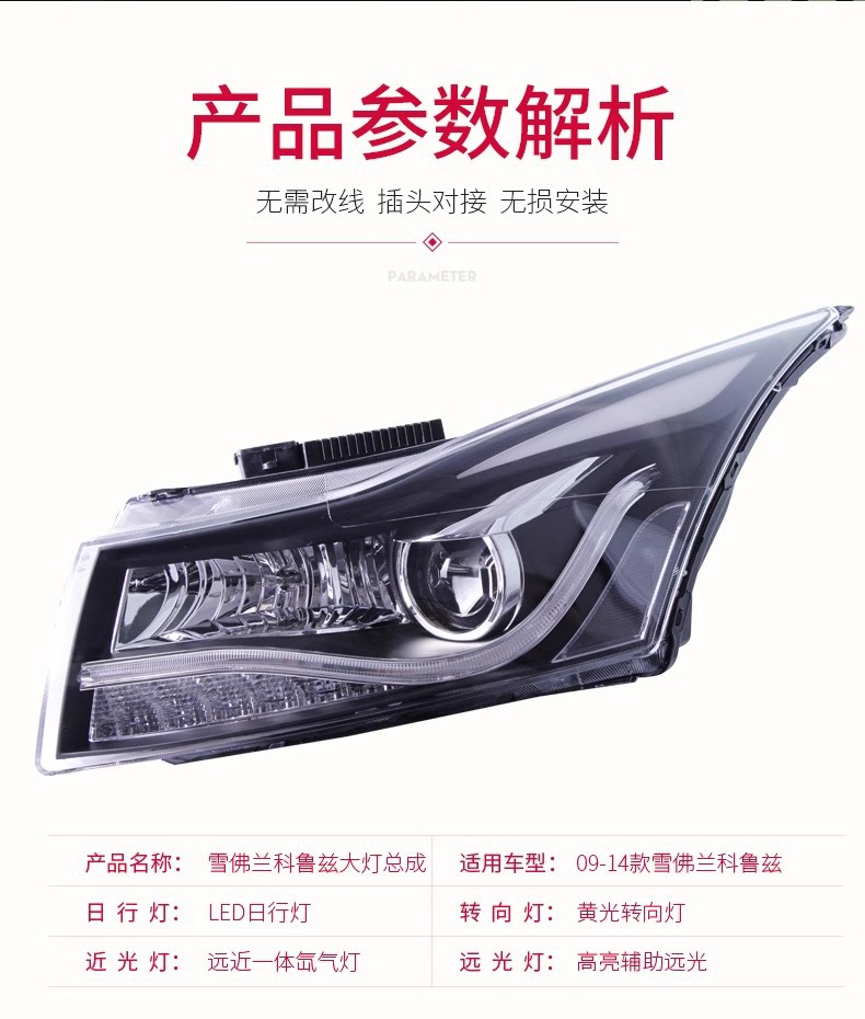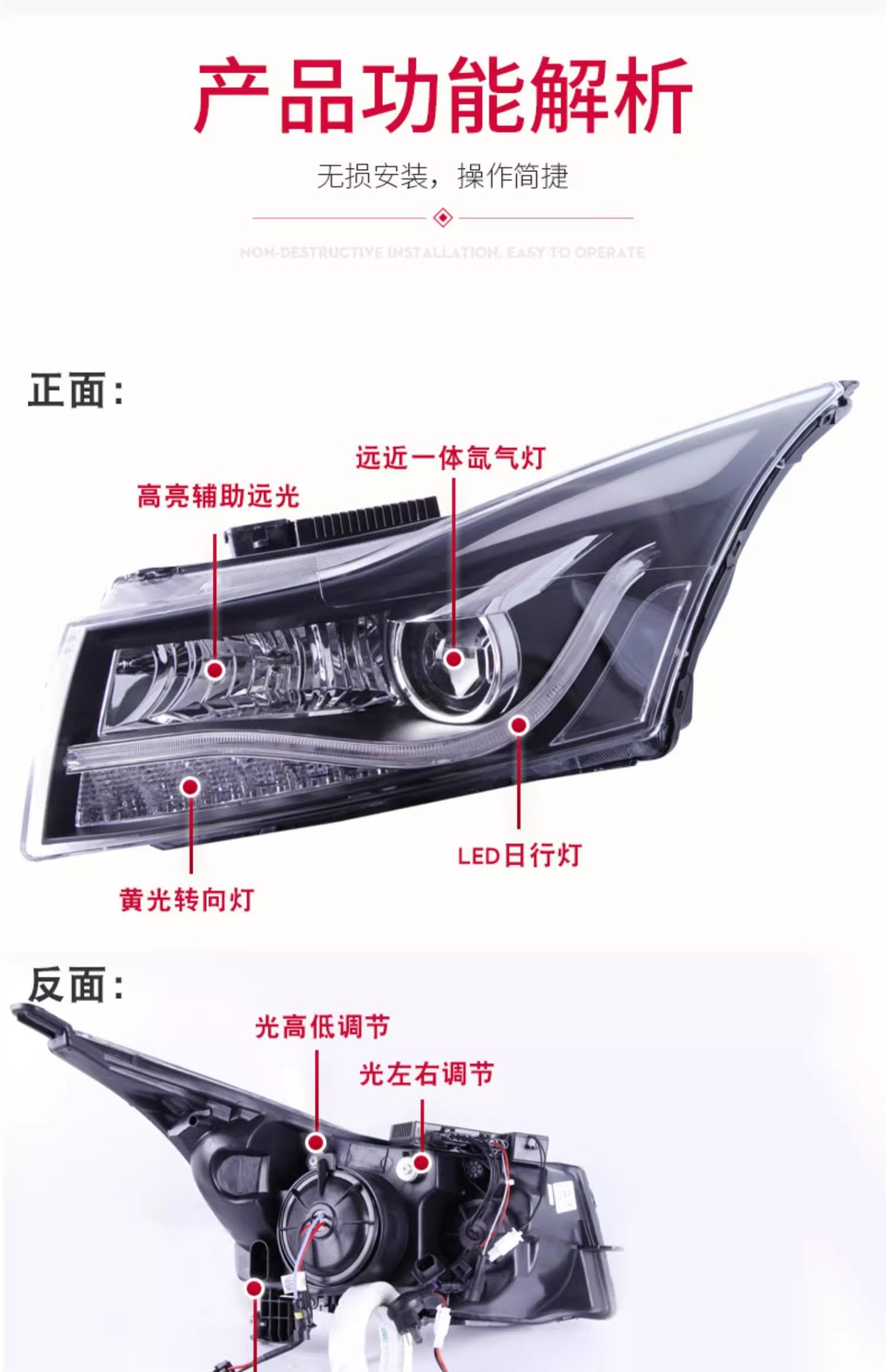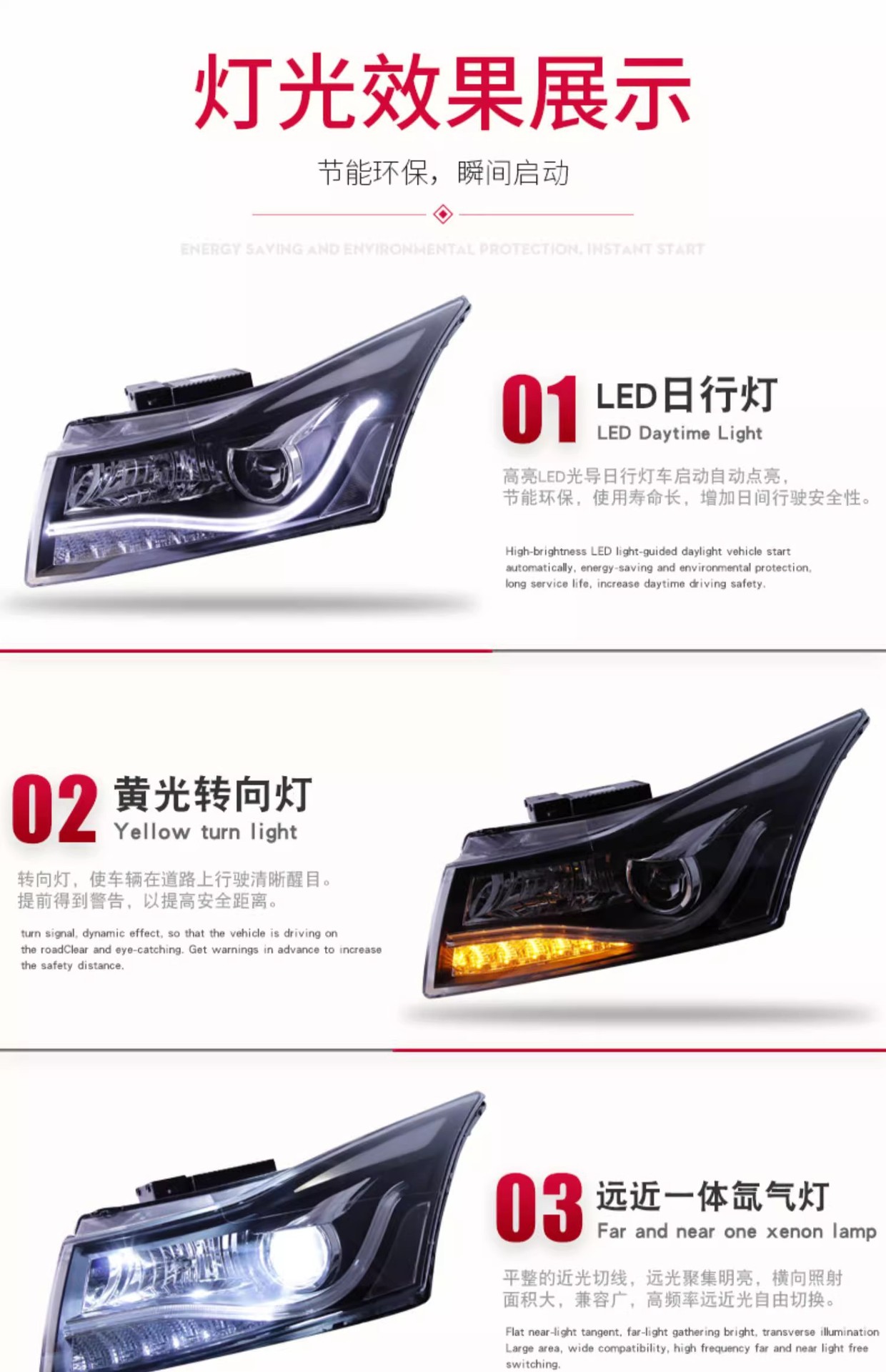 Headlight Assembly Headlamp Lens Xenon LED DRL Turn Signal Lamp for Chevrolet Cruze (2009-2014) Hatchback