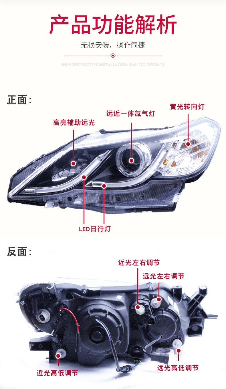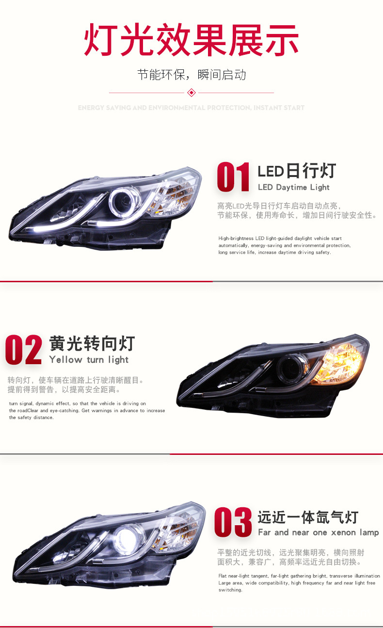 - Premium Illumination: Features integrated LED Daytime Running Lights (DRL), bright Angel Eye design, and projector lenses with xenon lamp capability for superior visibility and safety.