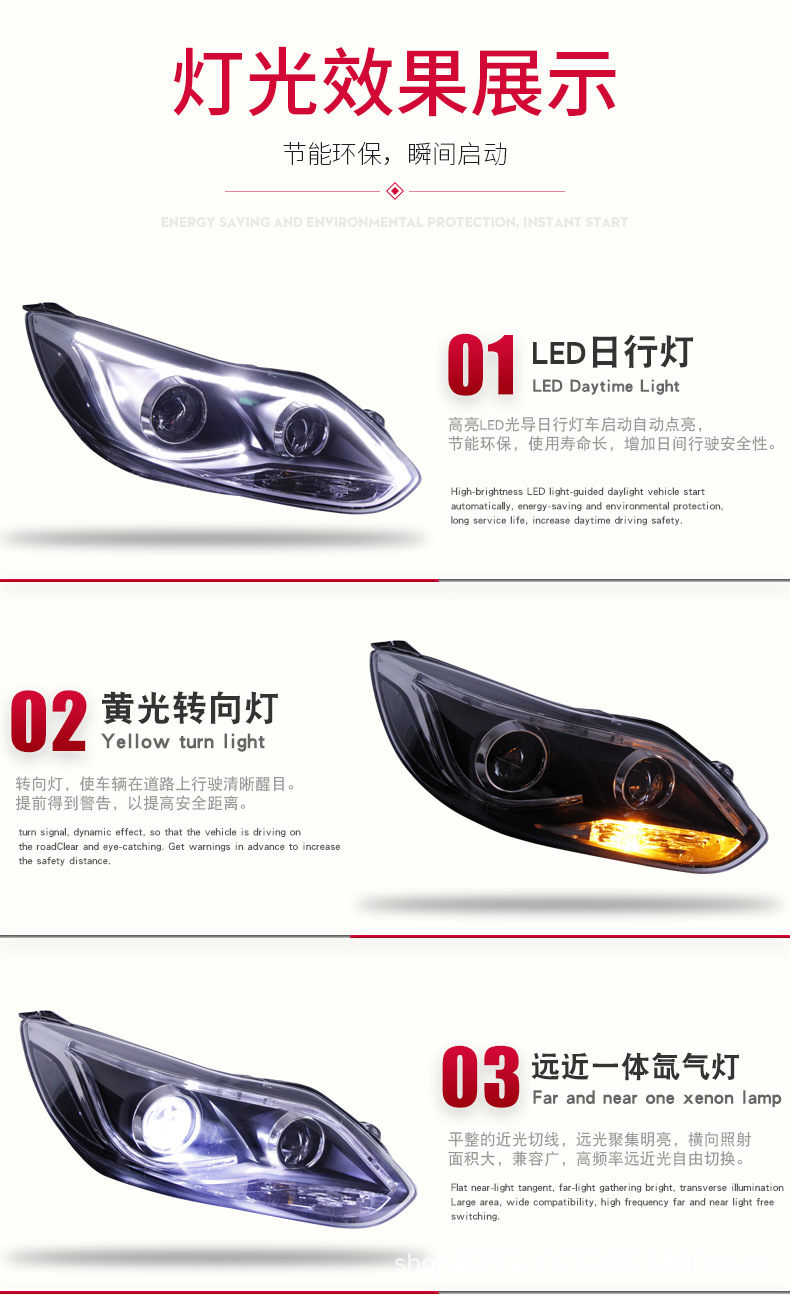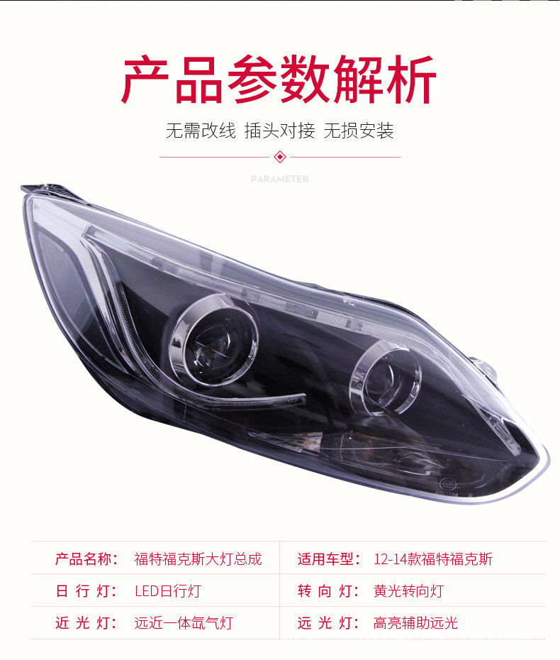 Headlight Assembly LED DRL Bi-Xenon Projector for Ford Focus (2012-2014)