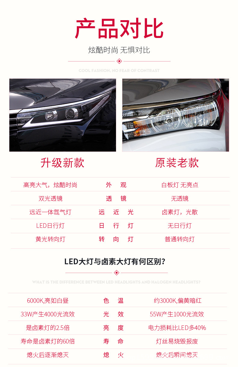- Modern Design: Upgrade your car’s aesthetic with a sleek, modern headlight assembly that includes LED DRLs, giving your Corolla a distinct and stylish appearance.