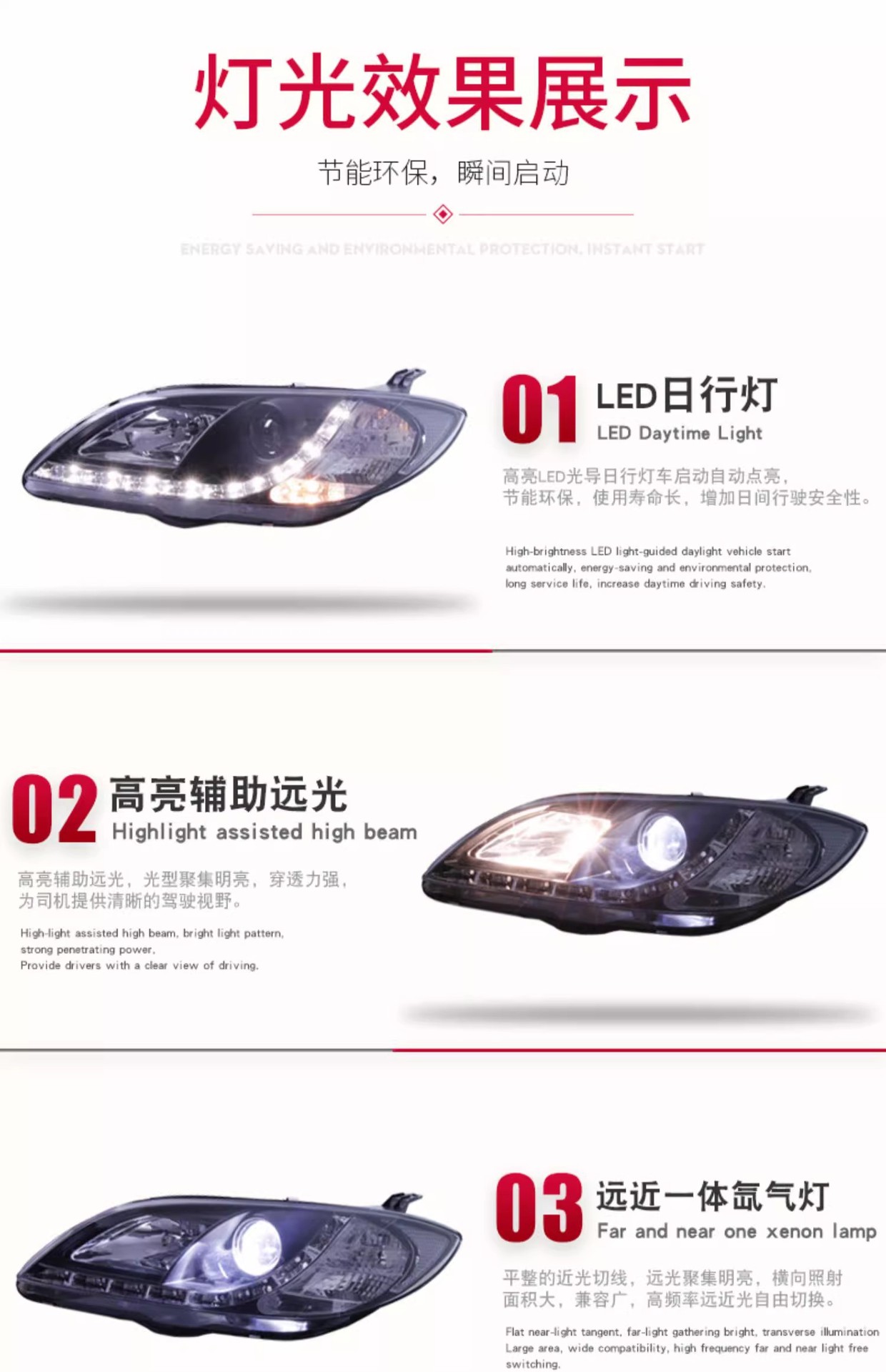 - Enhanced Visibility & Style: Features advanced LED Daytime Running Lights (DRL) for improved road presence, bi-xenon projector lenses for sharp, focused light output, and HID Xenon lamps for superior brightness, enhancing both safety and vehicle aesthetics.