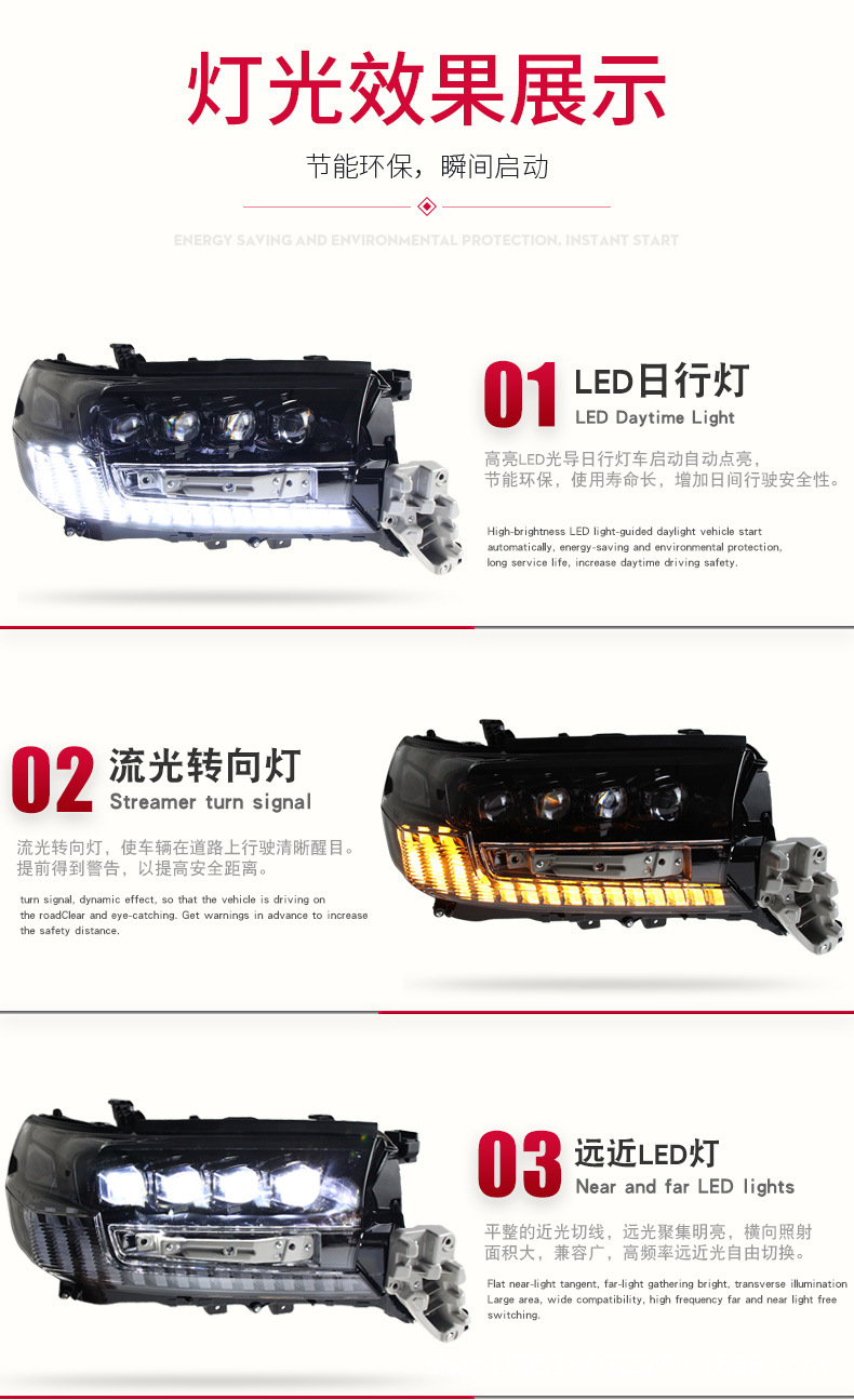 Headlight Assembly LED DRL Crystal Lens Sequential Turn Signal for Land Cruiser