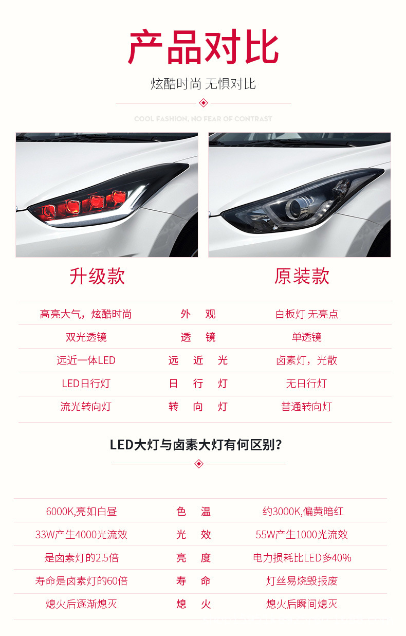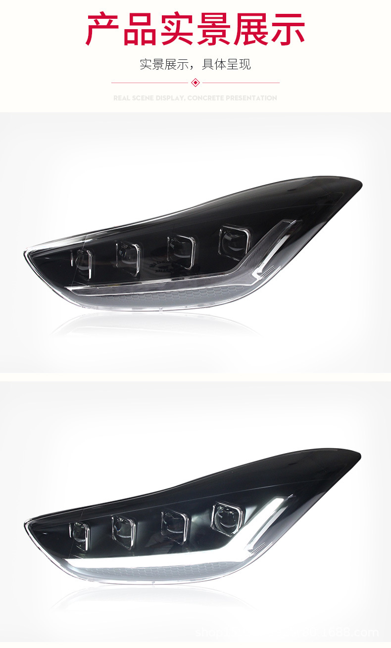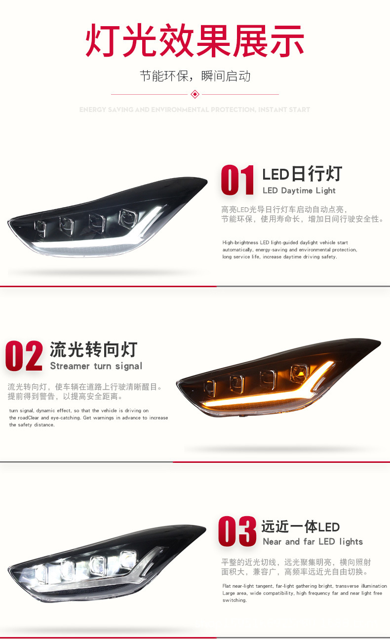 Headlight Assembly LED DRL Demon Eye Flowing Turn Signal for Hyundai Elantra 2012-2017