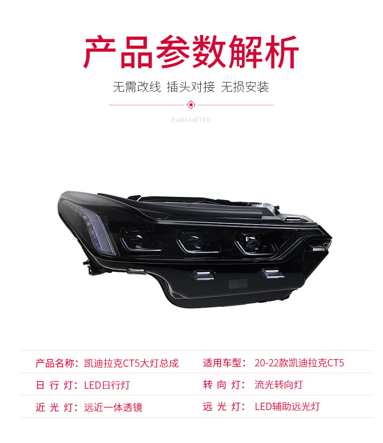 - Precise Fitment: Specifically designed for Cadillac CT5 2019-2022 models, ensuring a perfect, direct-fit replacement for your original headlight assembly.