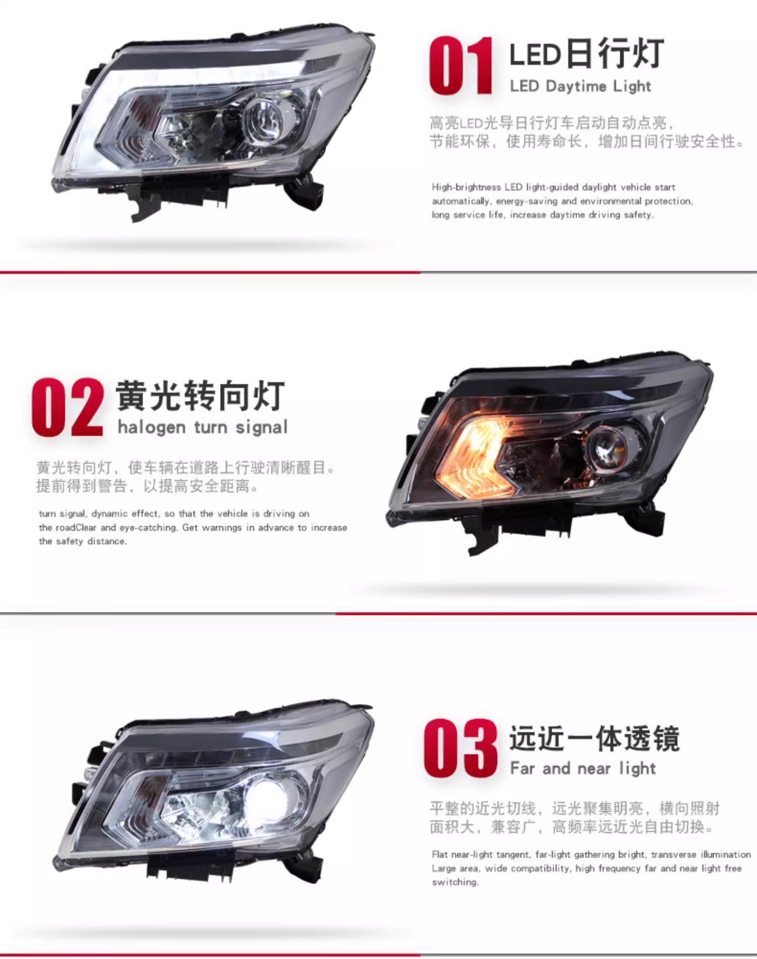Headlight Assembly LED DRL Projector for Nissan Navara NP300 2014-2022