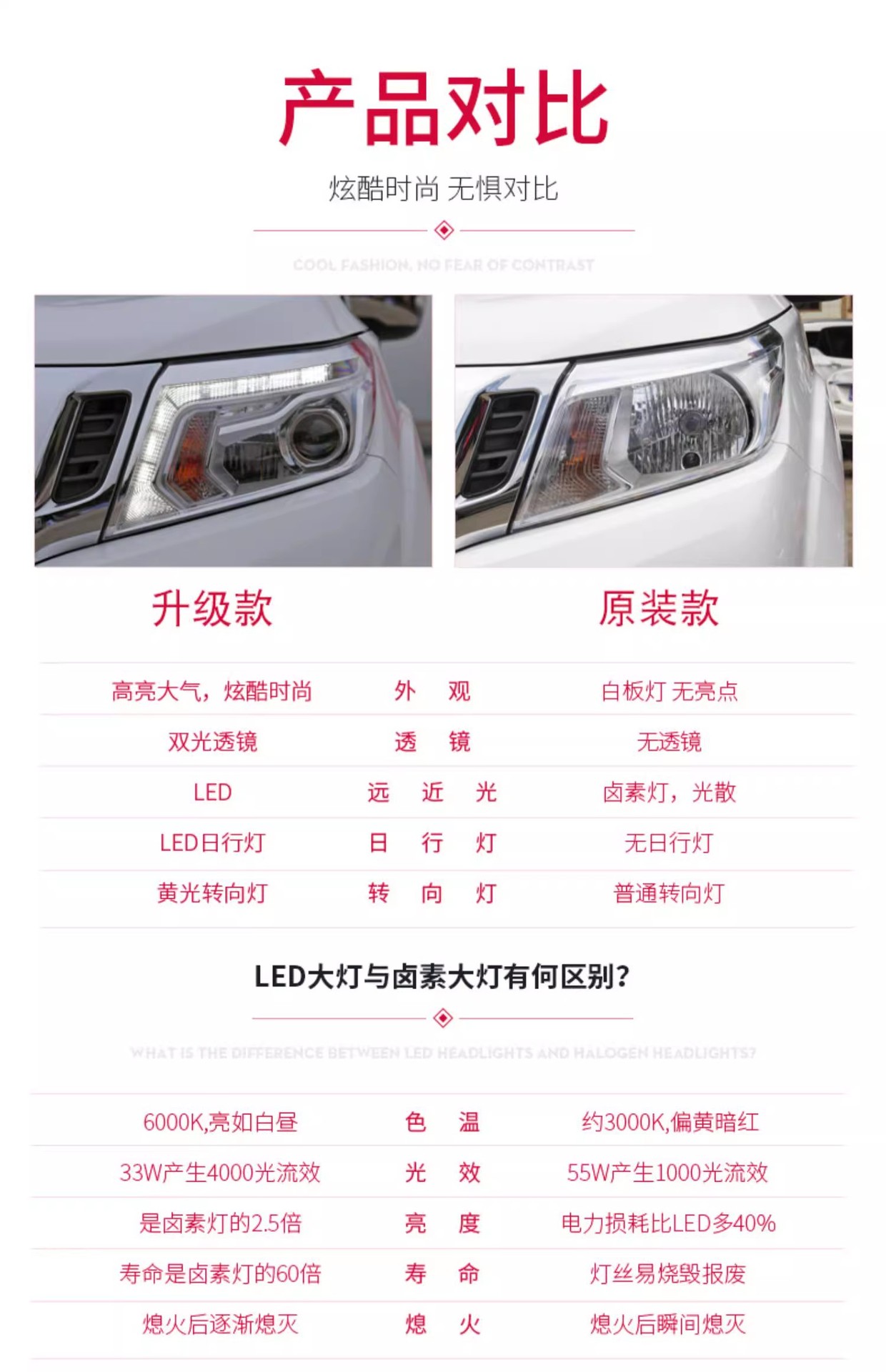 - Modern LED Lighting: Upgrade your vehicle’s aesthetics and visibility with integrated LED daytime running lights (DRL) and projector lenses, providing brighter, clearer illumination and a modern look.