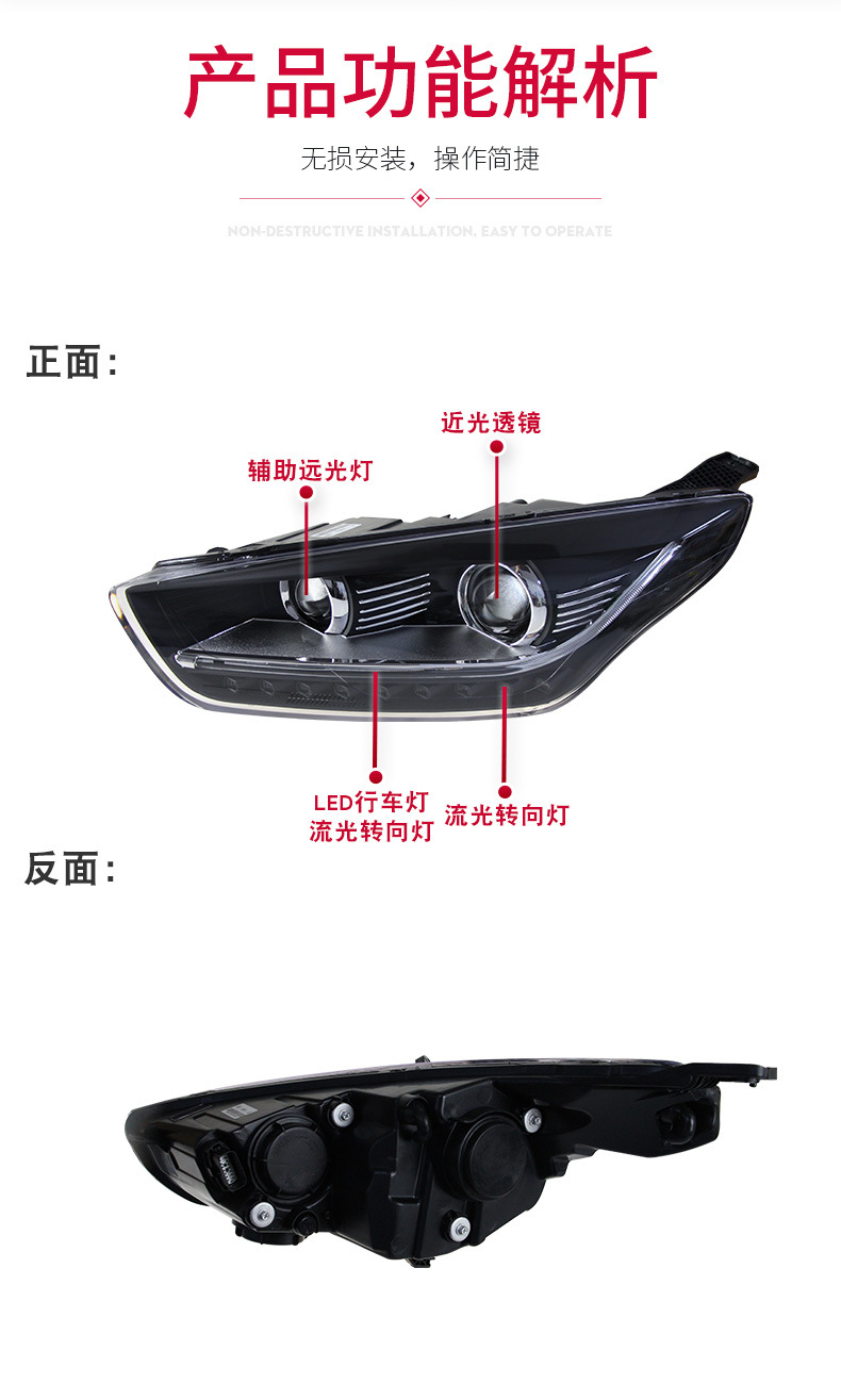 - Precise Fitment: Specifically designed for Ford Focus 2015-2018 models, ensuring a perfect, direct-fit replacement for your original headlight assembly.