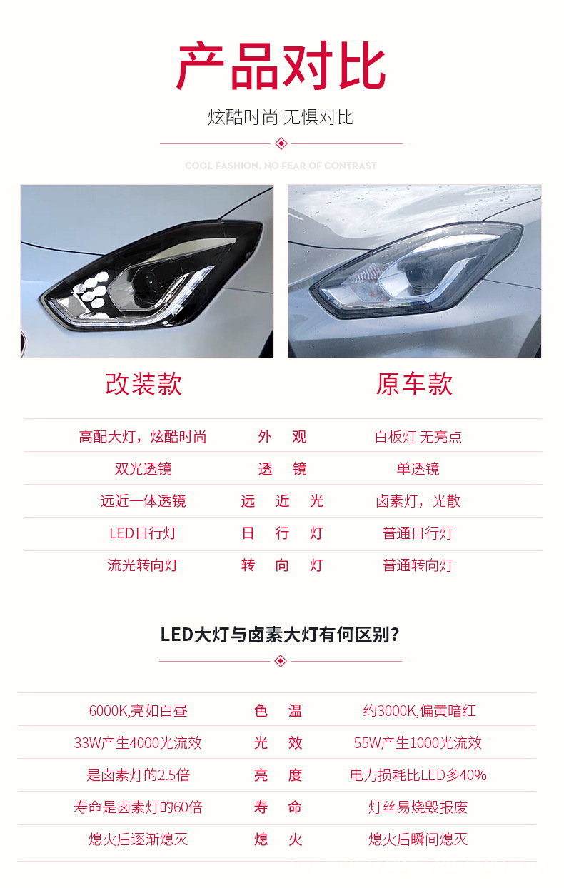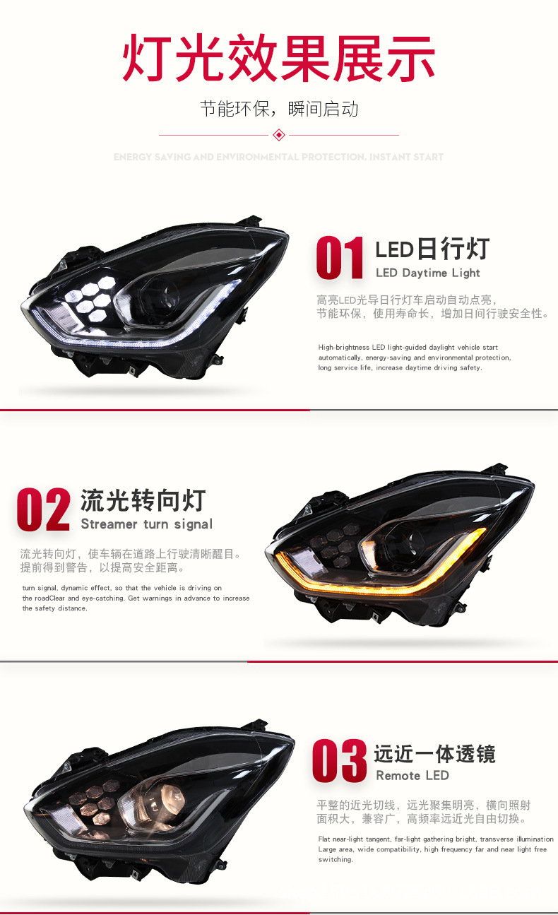 - Modern Design & Style Update: Features integrated LED Daytime Running Lights (DRL) and dynamic sequential turn signals, transforming your vehicle’s front-end aesthetics with a contemporary and sporty look.