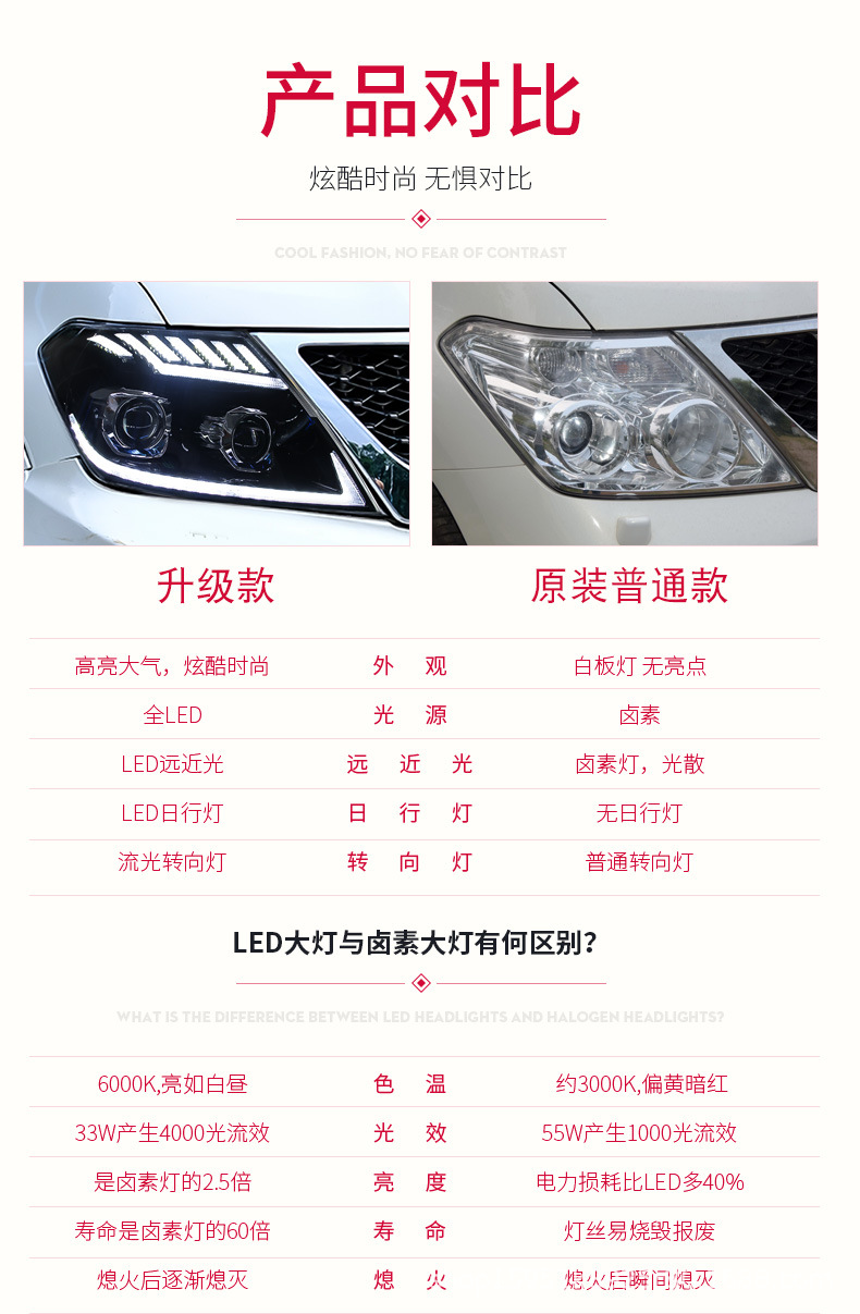 - Modern Aesthetic & Visibility: Features integrated LED Daytime Running Lights (DRL) and sequential turn signals for a distinctive look and improved on-road visibility. Bi-Xenon projector lenses offer superior light output.