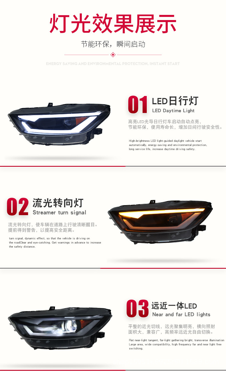 Headlight Assembly LED DRL Sequential Turn Signal for Ford Mustang (2015-2017)