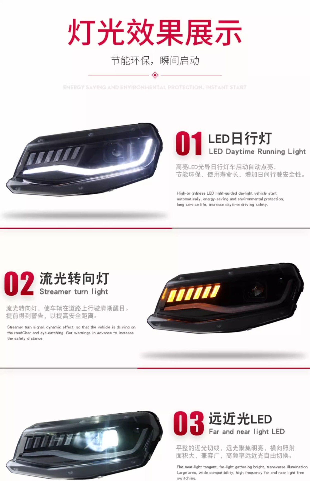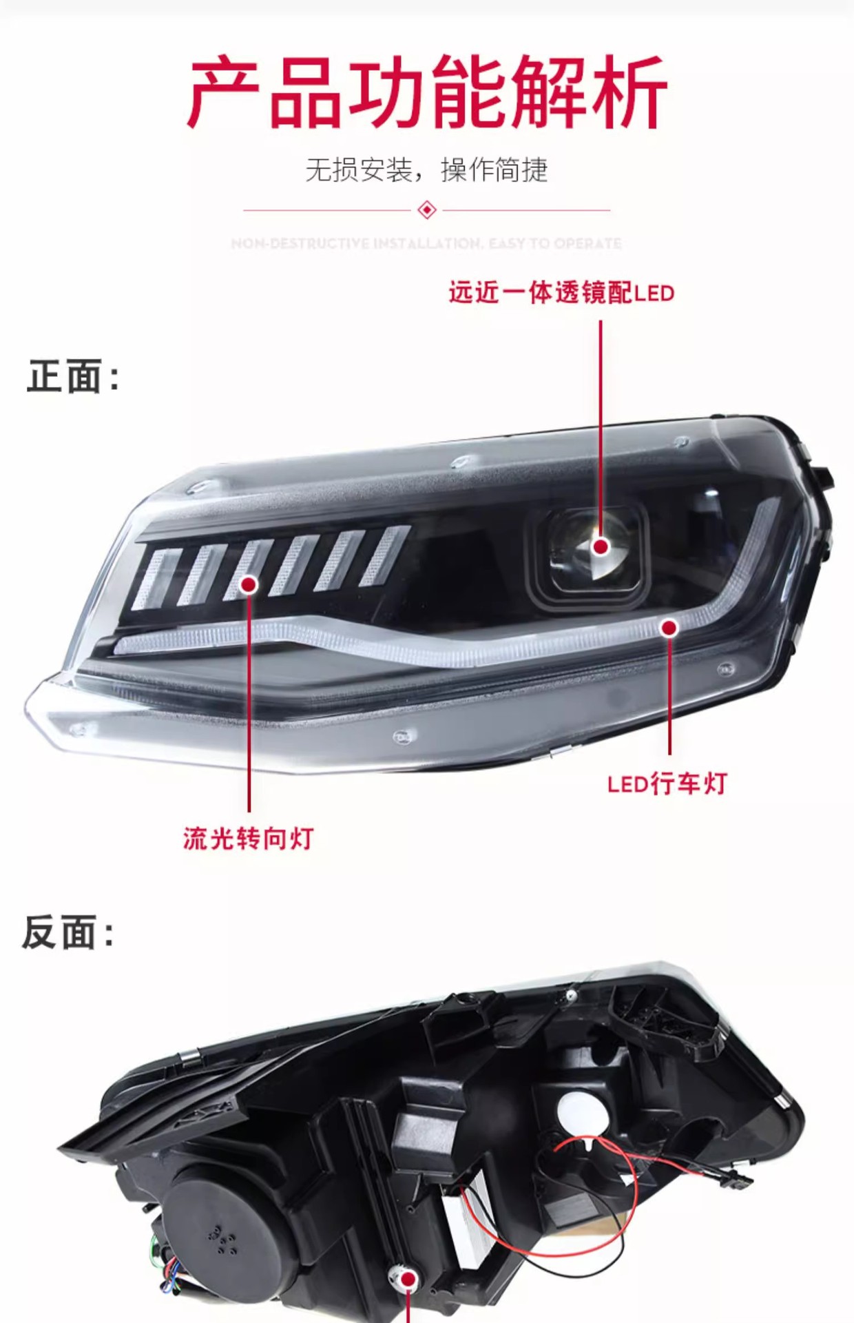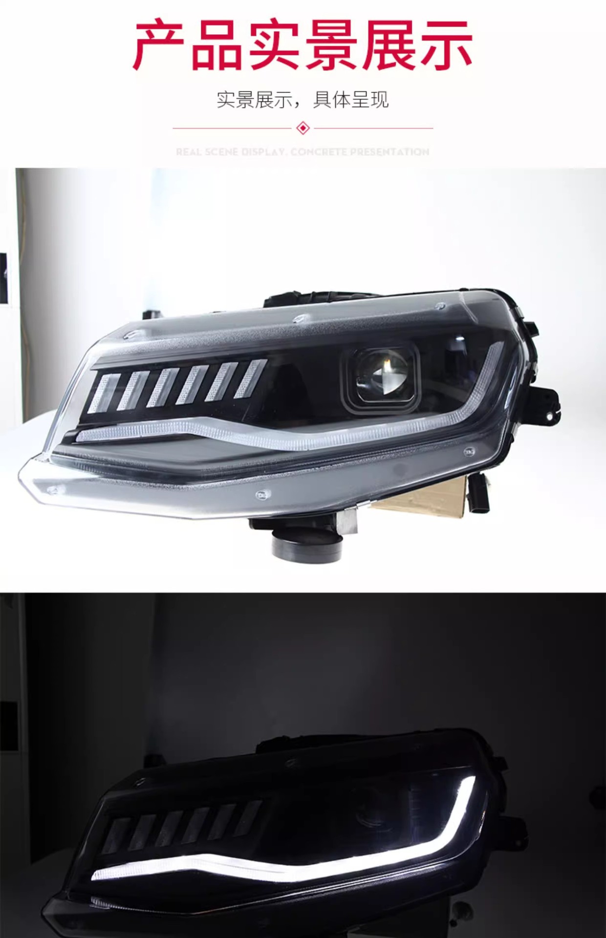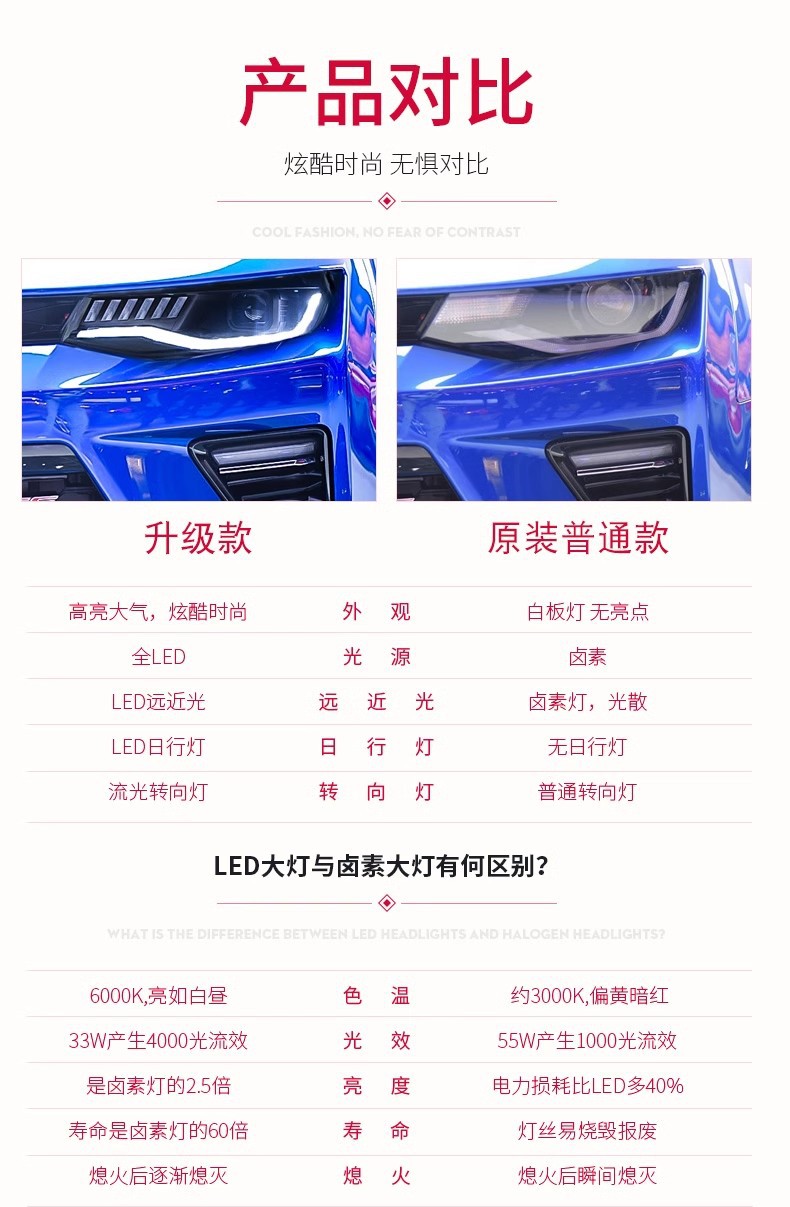 - Modern LED Lighting & Stylish Design: Features integrated LED Daytime Running Lights (DRL) and dynamic sequential turn signals, providing superior visibility and giving your Camaro a contemporary, eye-catching aesthetic upgrade.