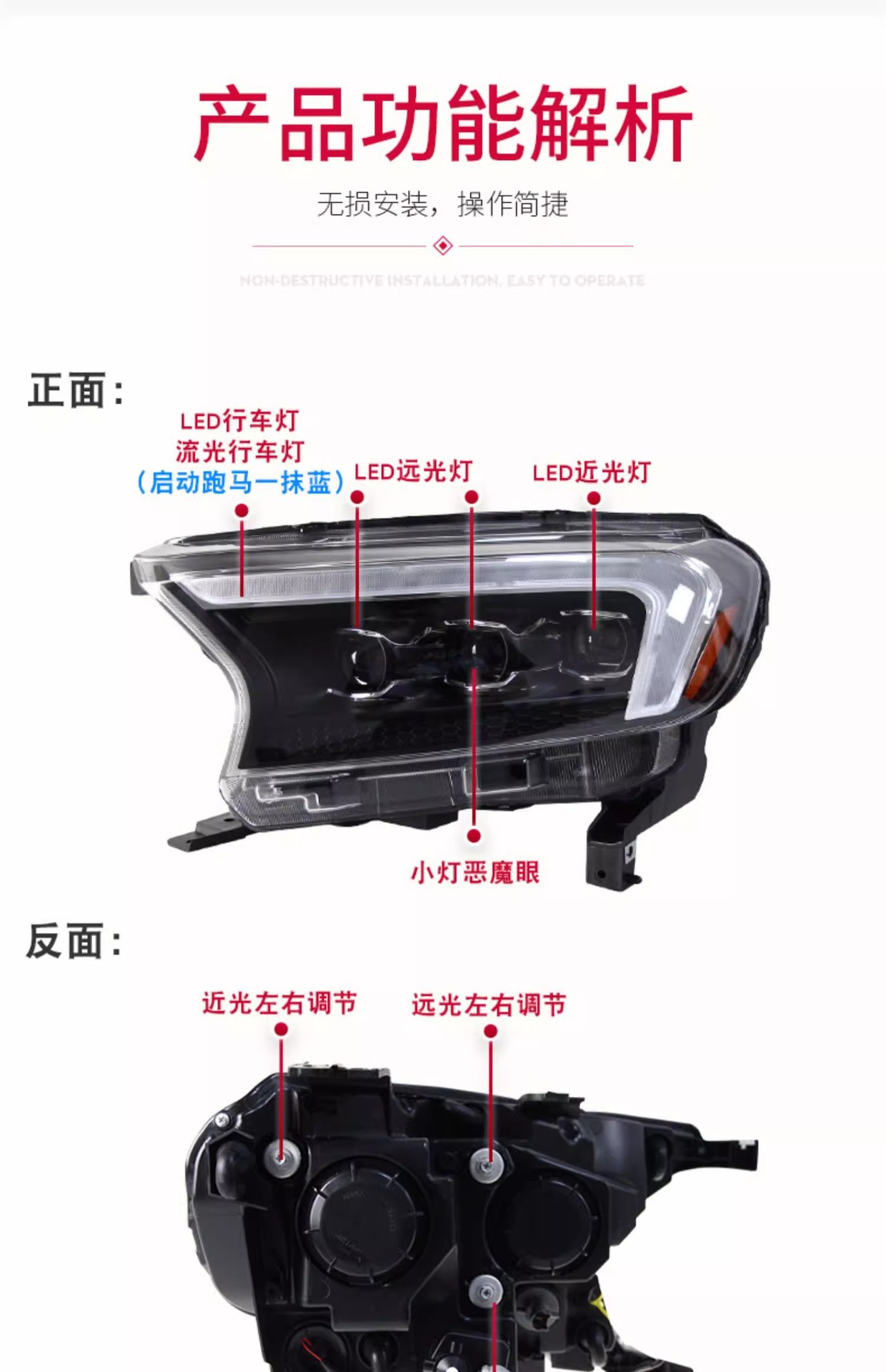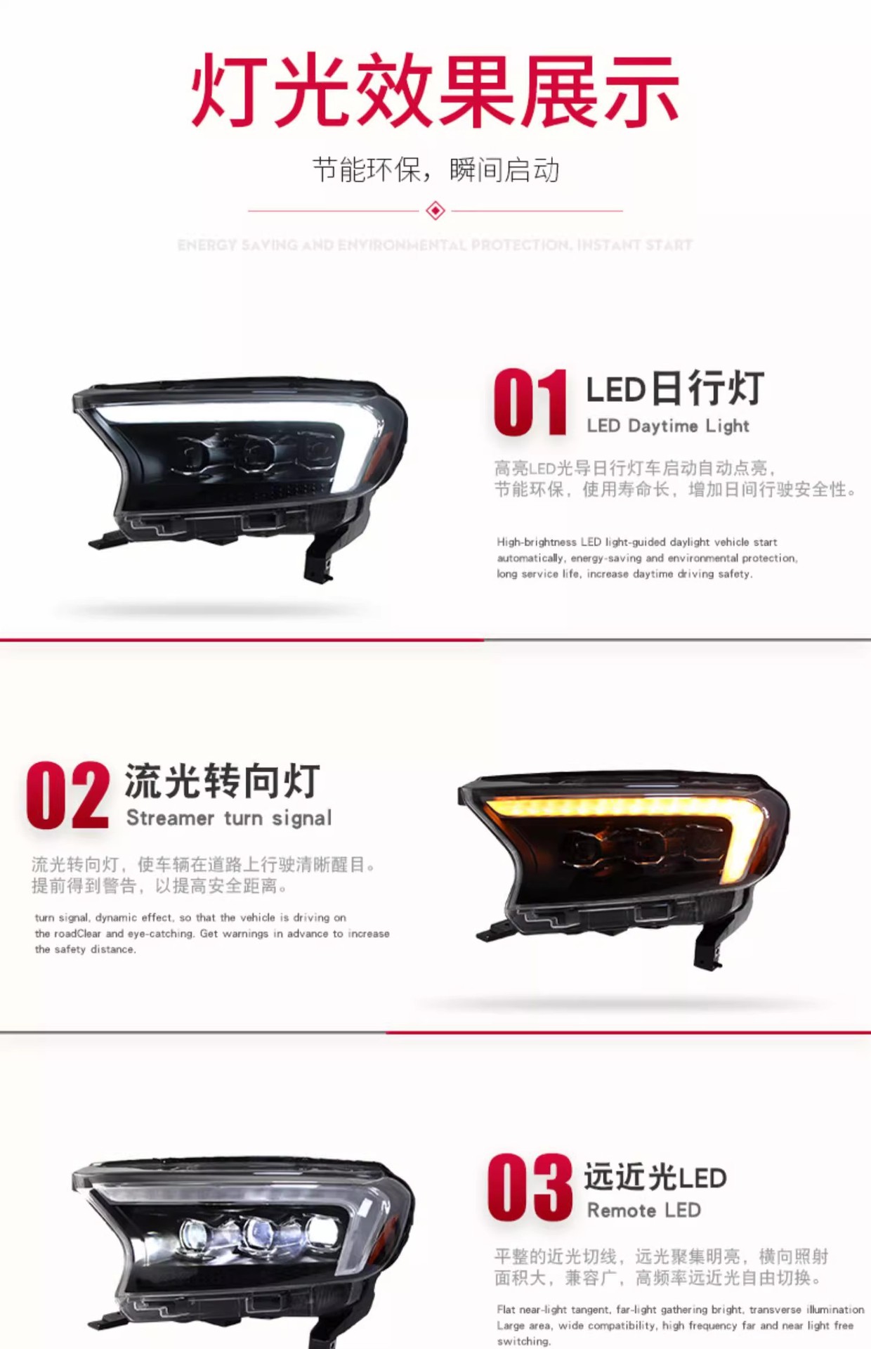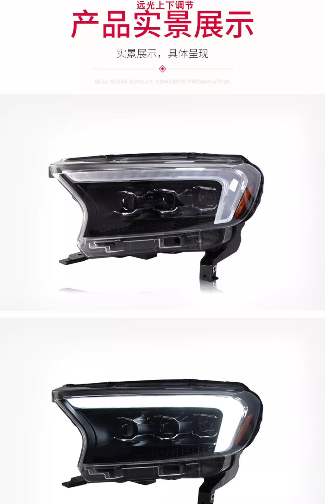 Headlight Assembly LED DRL Sequential Turn Signal for Ford Ranger Everest 2015-2021