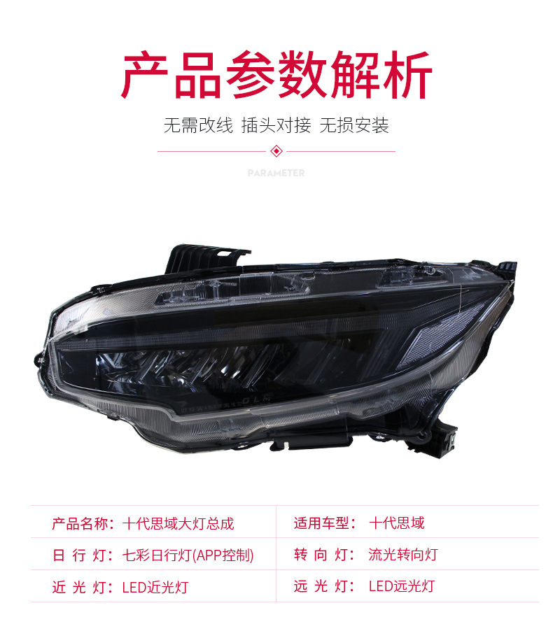 - Package Content & Value: Each package includes one Dragon Wing style 7-color APP LED Headlight (single side). Upgrade your Civic’s lighting system with a stylish and functional full assembly.