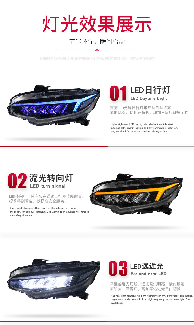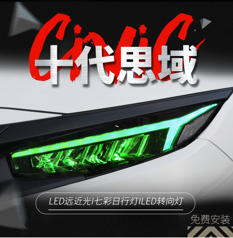 - Enhanced Aesthetics & Style: Features unique ‘Dragon Wing’ style and 7-color APP-controlled LED Daytime Running Lights (DRL) with dynamic sequential turn signals, providing a modern and distinctive look to your Civic.
