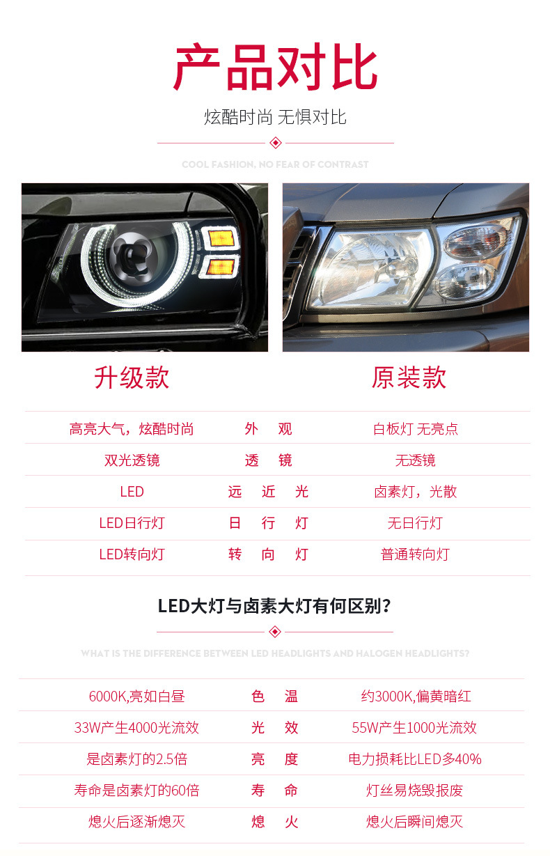 - Complete Set Included: Each package contains a complete set of LED headlight assemblies for Nissan Patrol Y61 (05-22), offering a comprehensive solution to refresh your vehicle’s front lighting system and driving experience.