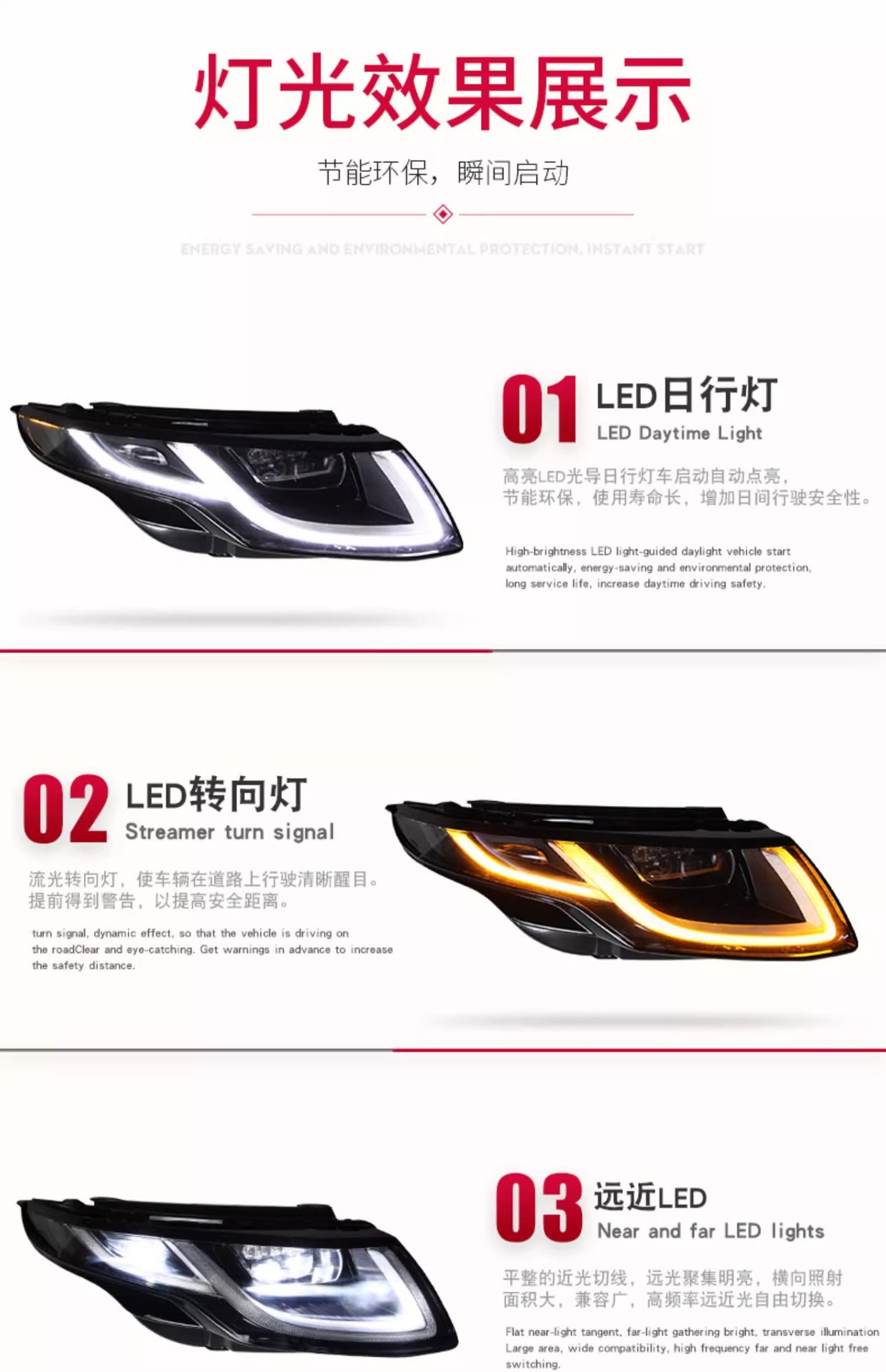 Headlight Assembly LED DRL Turn Signal Headlamp for Land Rover Range Rover Evoque 2013-2017