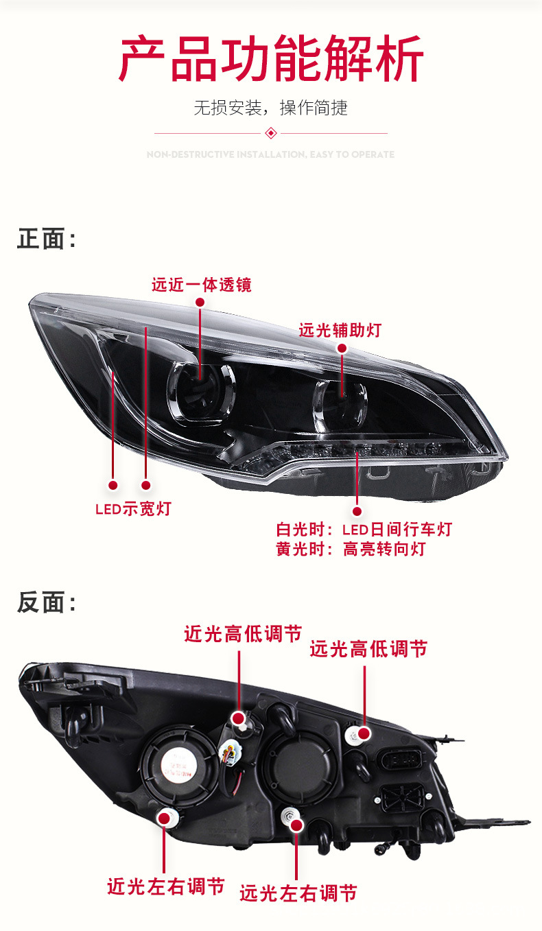 - Advanced Bi-Xenon Projector: Equipped with bi-xenon projector lenses that offer superior light output and a precise beam pattern for both low and high beams. Delivers brighter, more focused illumination for improved night-time driving safety.