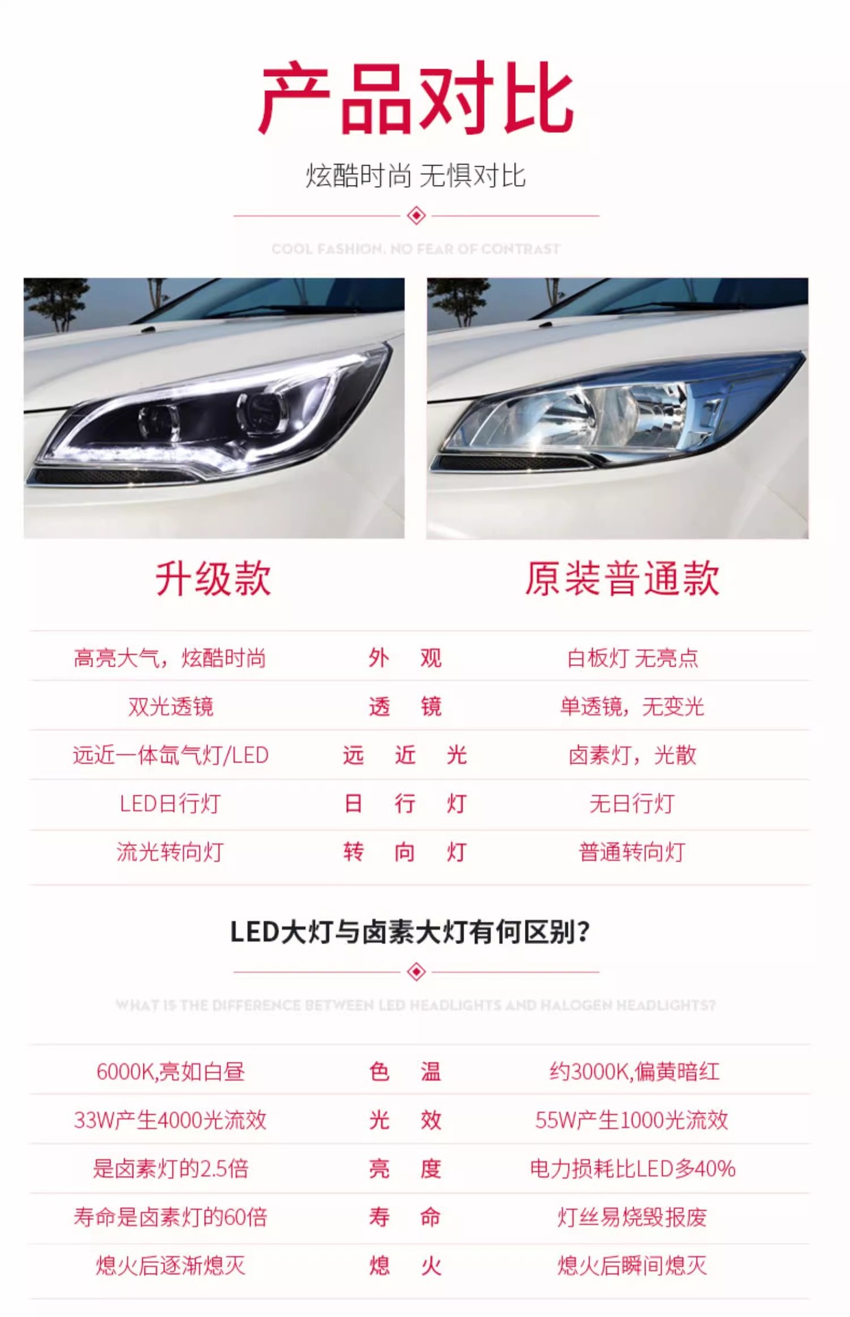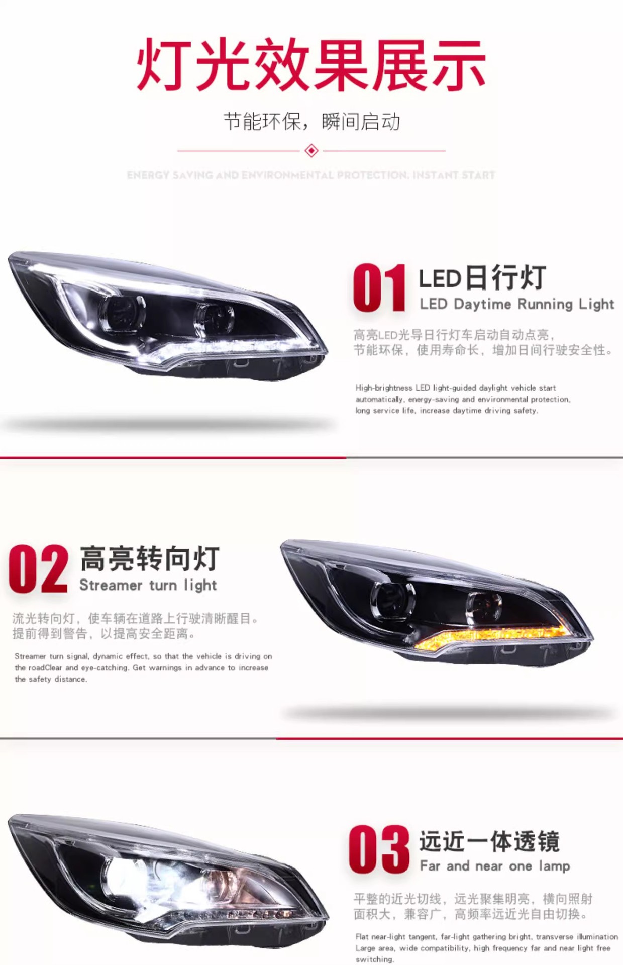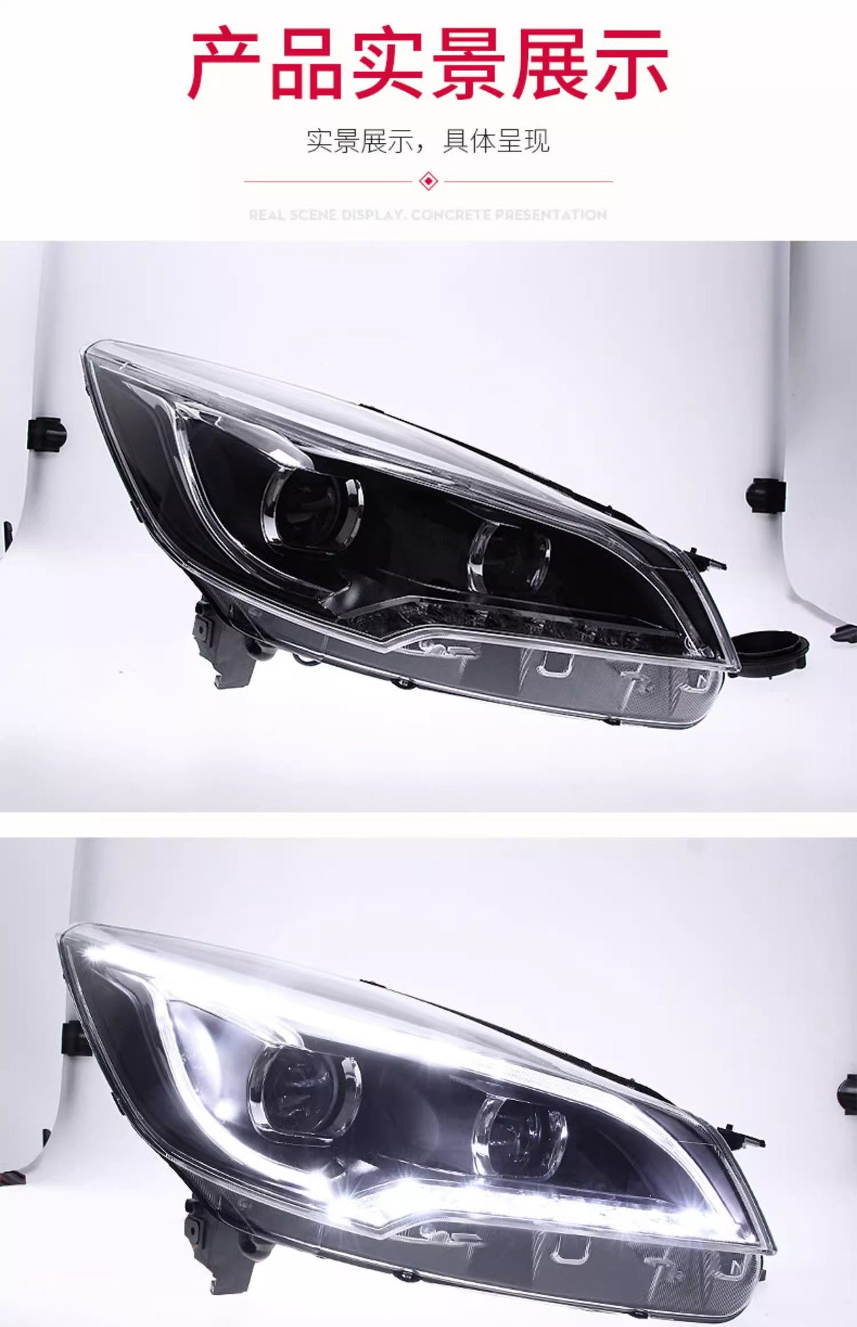 - Enhanced Aesthetics & Visibility: Features integrated LED Daytime Running Lights (DRL) and dynamic turn signals, coupled with a dual projector xenon lamp design, significantly upgrading your vehicle’s appearance and road illumination.