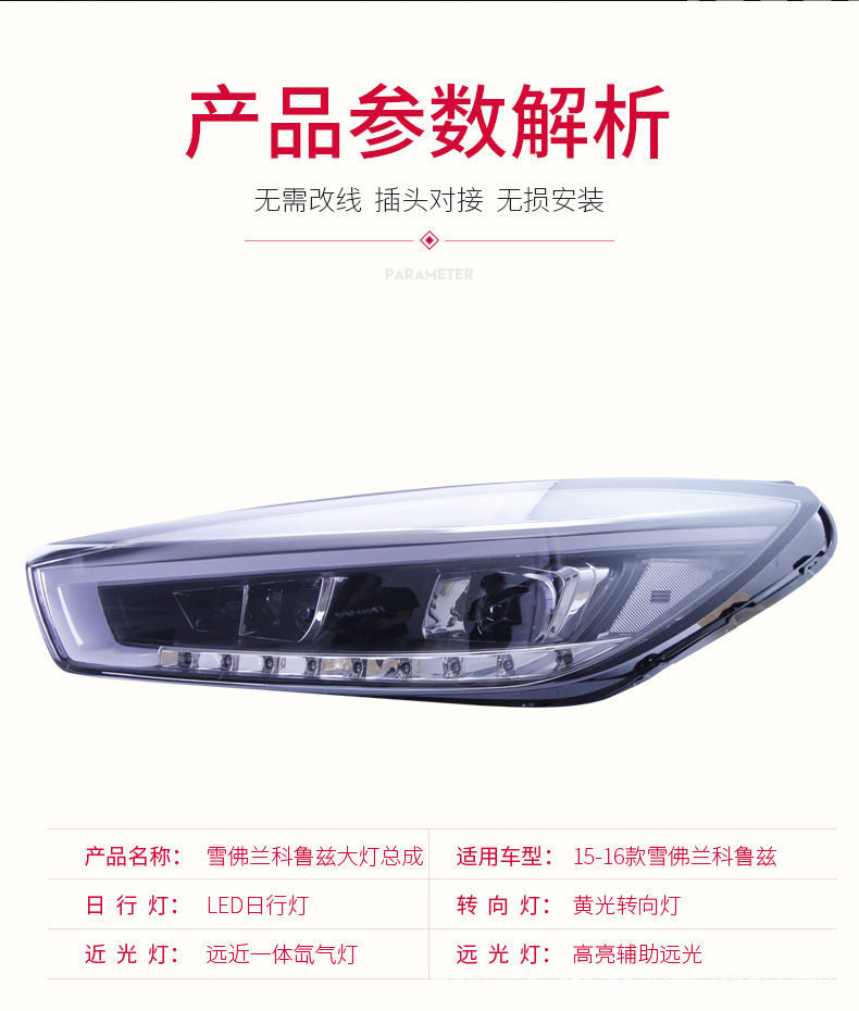 Headlight Assembly LED Daytime Running Lights Turn Signals Xenon Projector for Chevrolet Cruze (2015-2016)