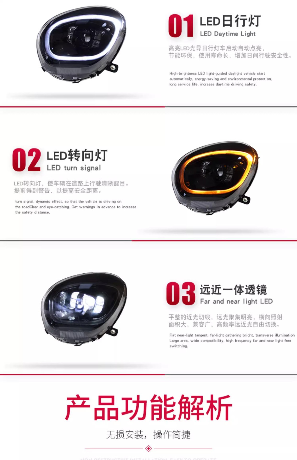 - Optimized Styling: Upgrade your MINI’s appearance with a sleek, modern design that incorporates LED daytime running lights, giving your car a distinctive and aggressive look.