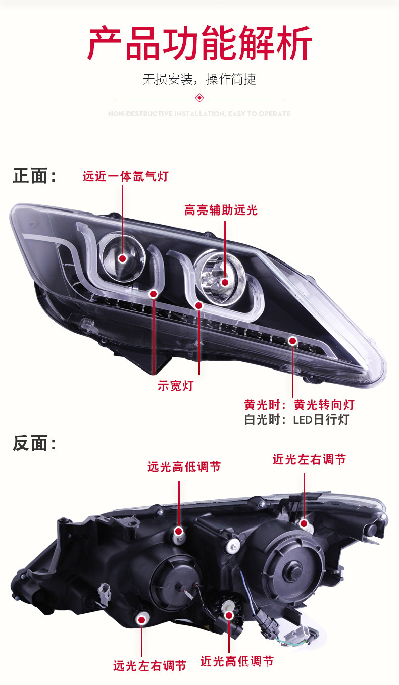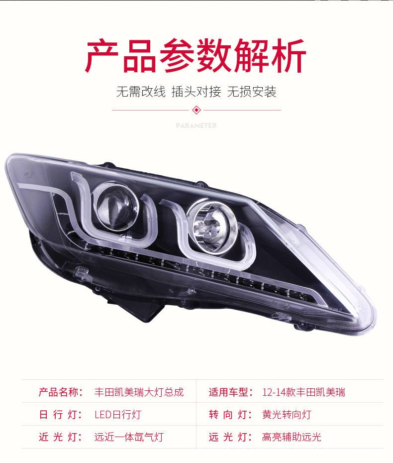 - Precise Fitment: Specifically designed for Toyota Camry 2012-2014 models, ensuring a perfect, direct-fit replacement for your original headlight assembly without modifications.