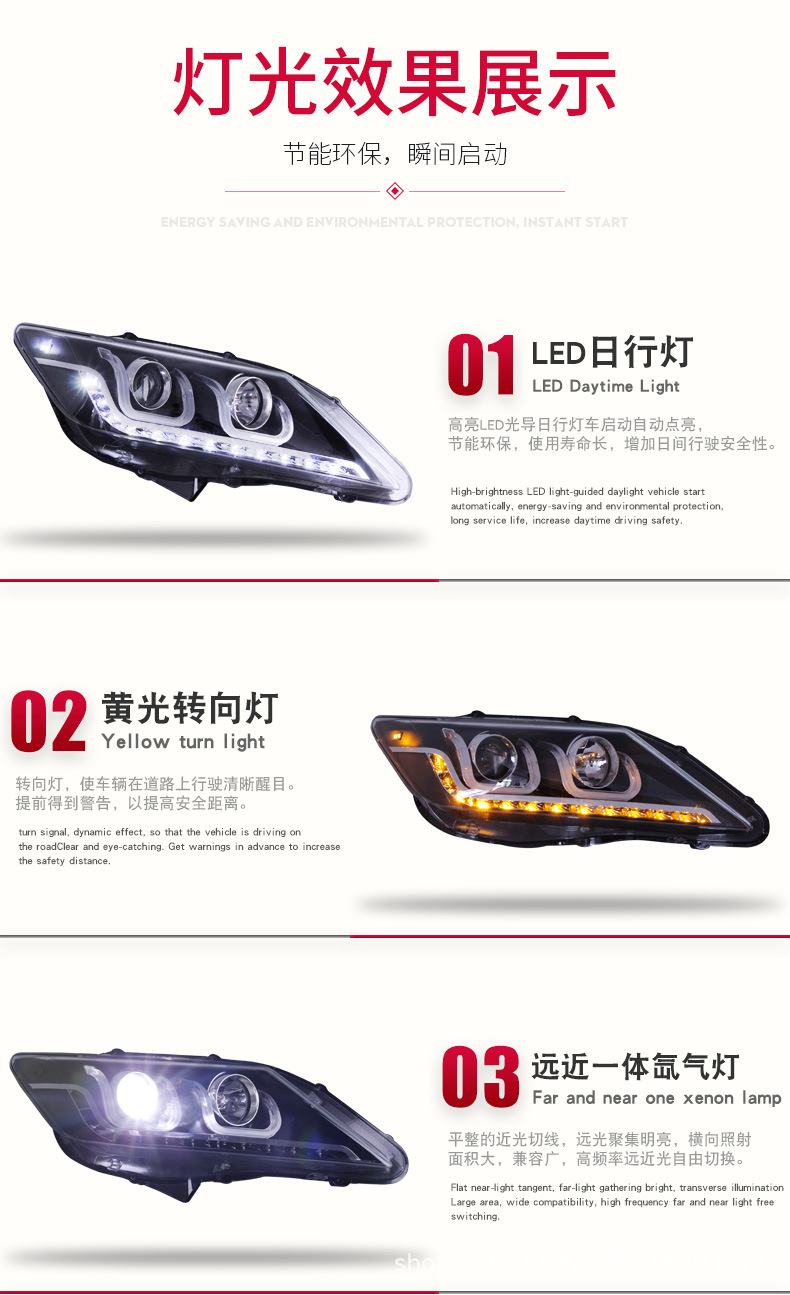 Headlight Assembly Xenon LED DRL Projector Headlights for Toyota Camry (2012-2014)